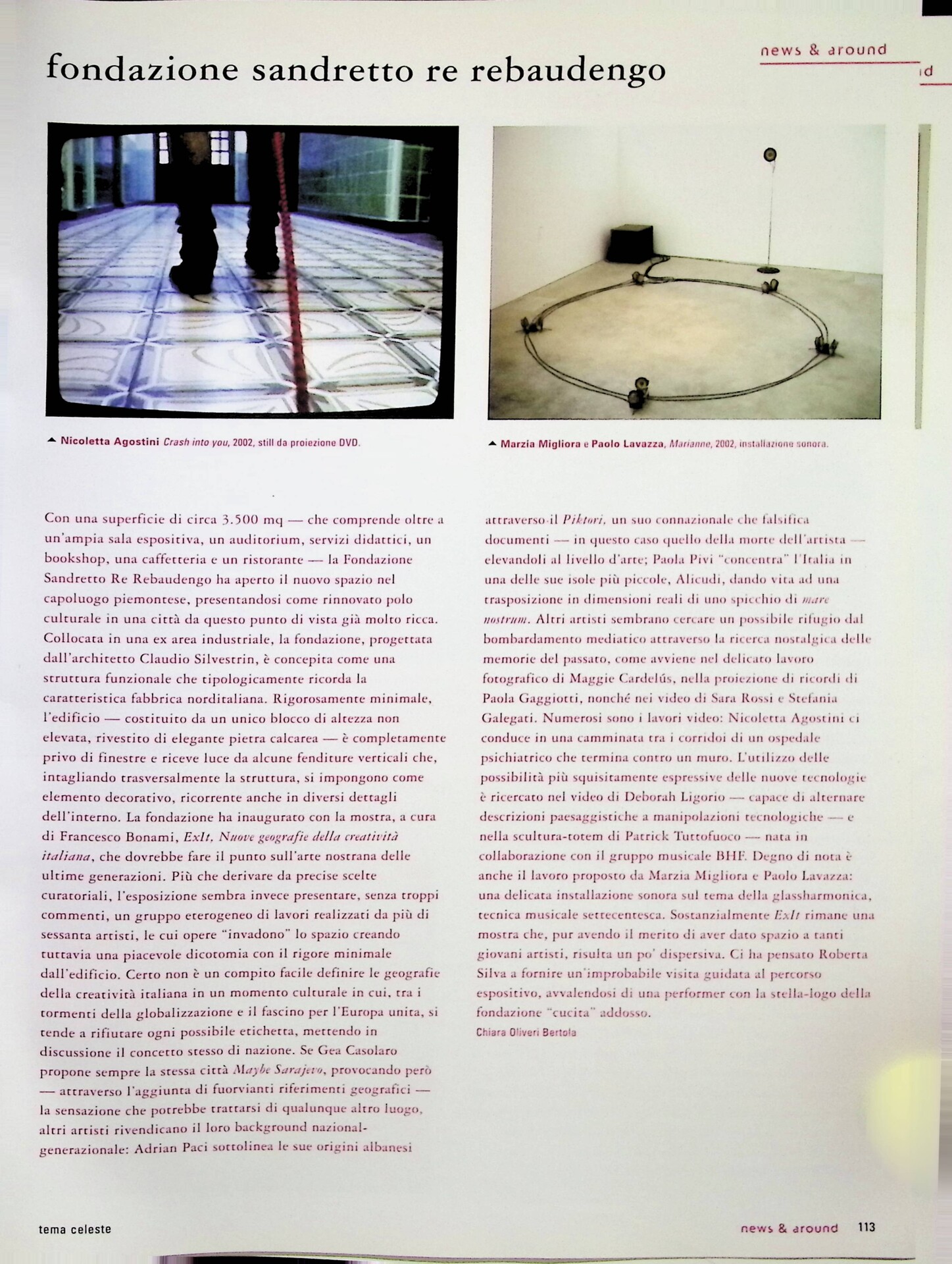 Chiara Oliveri Bertola, Fondazione Sandretto Re Rebaudengo, «Tema Celeste», n. 94, novembre-dicembre 2002, p. 113
