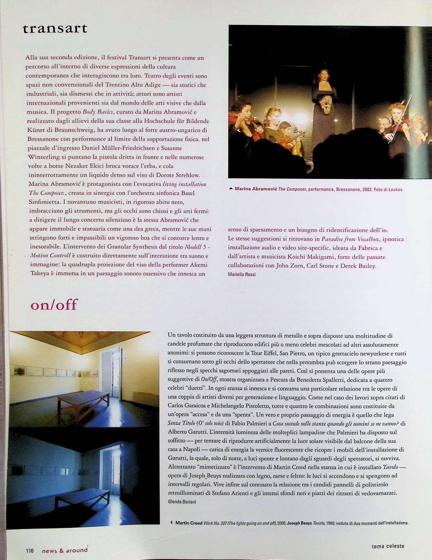 | Cit. bibliografica | Mariella Rossi, Transart, «Tema Celeste», n. 94, novembre-dicembre 2002, p. 116 |