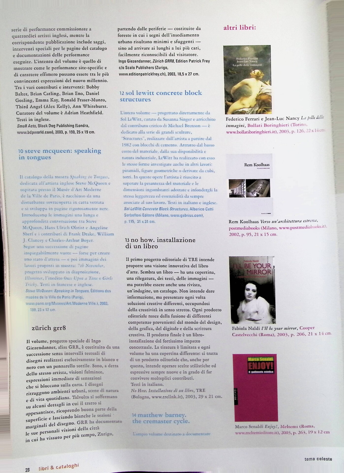 | Cit. bibliografica | Steve McQueen: Speking in Tongues, «Tema Celeste», n. 98, luglio-agosto 2003, p. 28 |