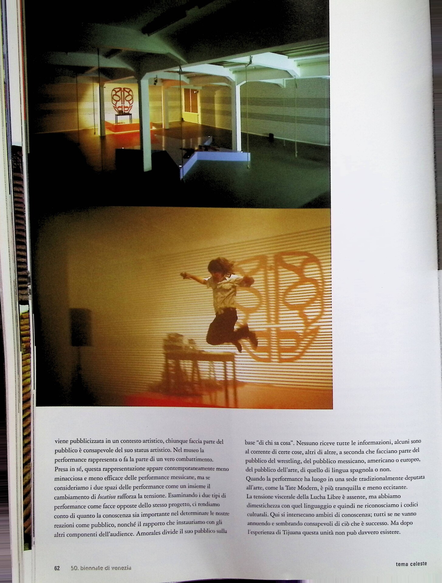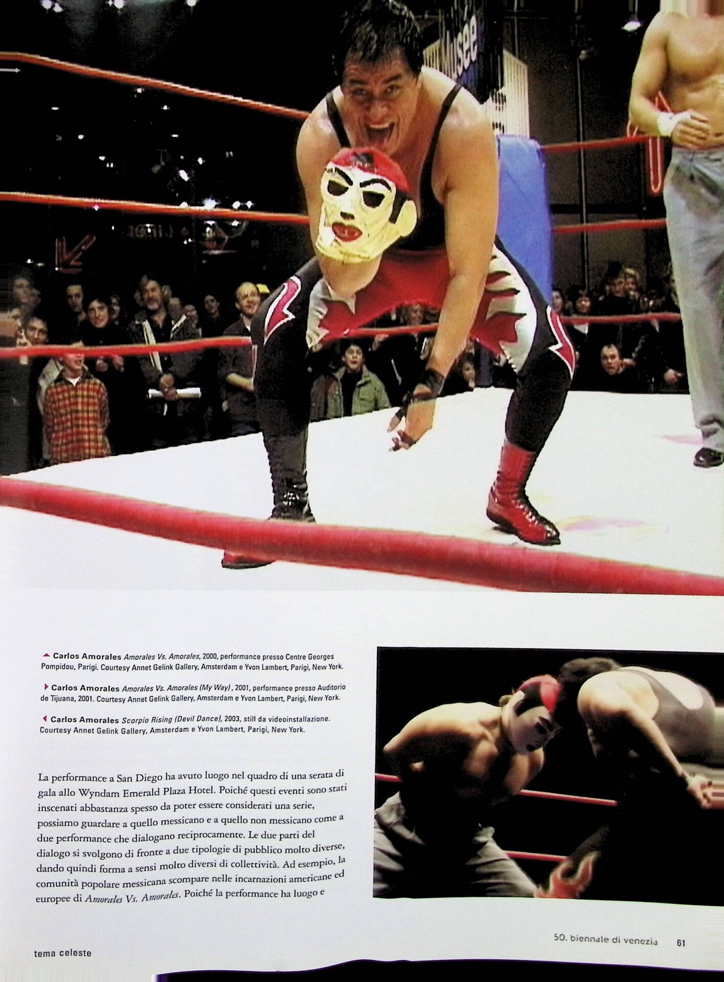 | Descrizione | Articolo dedicato a Carlos Amorales [messicano] e alle sue performance a Tijuana e San Diego, che utilizzano l'arena popolare del wrestling come contesto per indagare i temi dell'identità, dello spettacolo e della sfera pubblica. |