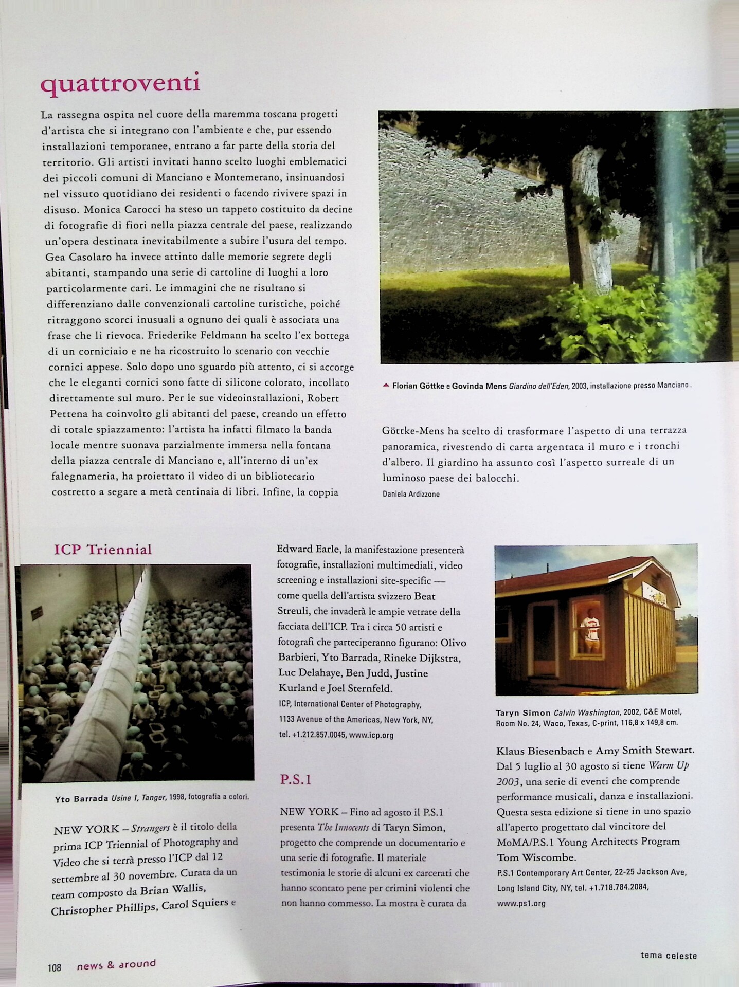 ICP Triennal, «Tema Celeste», n. 98, luglio-agosto 2003, p. 108