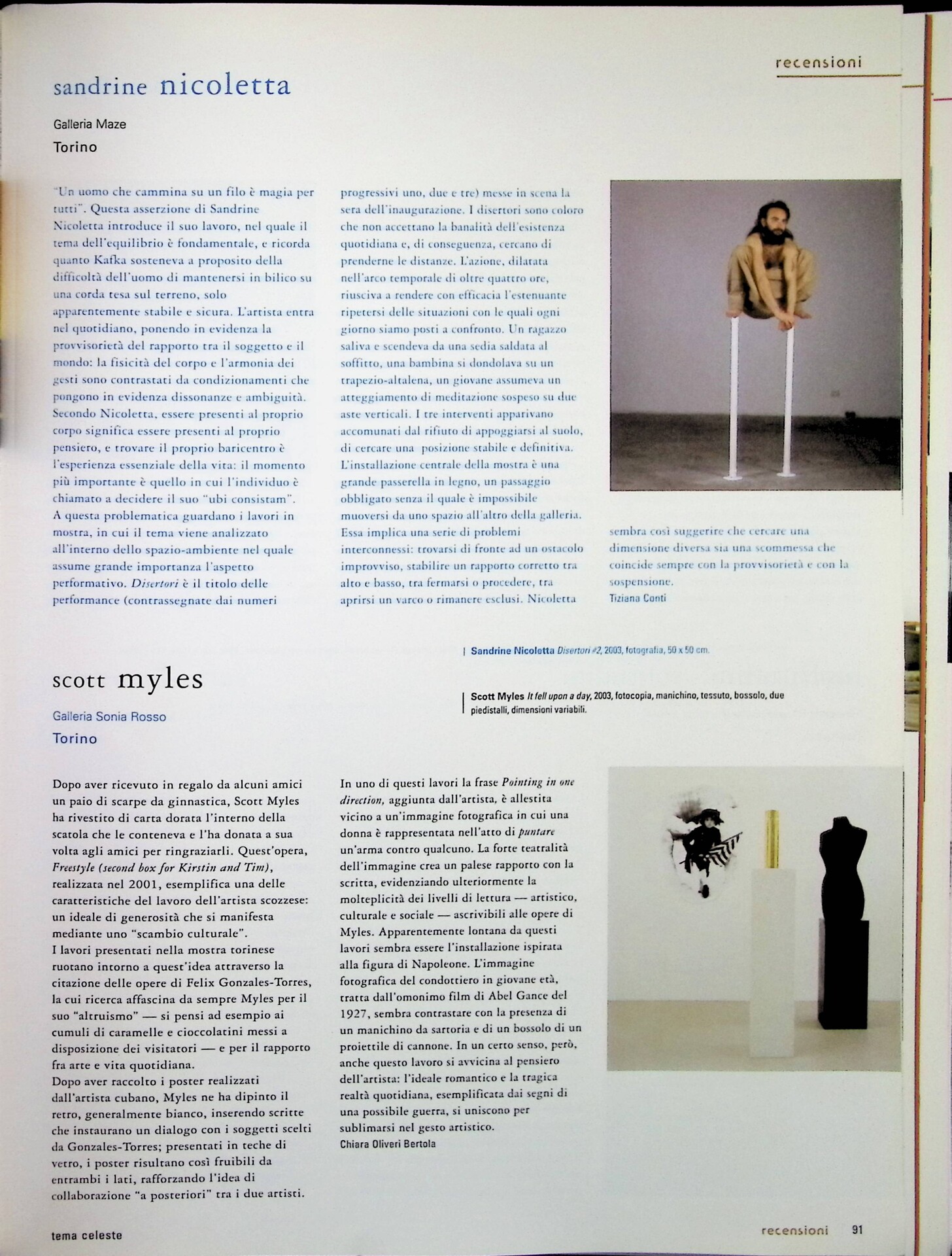 Chiara Oliveri Bertola, Scott Myles, «Tema Celeste», n. 99, settembre-ottobre 2003, p. 91