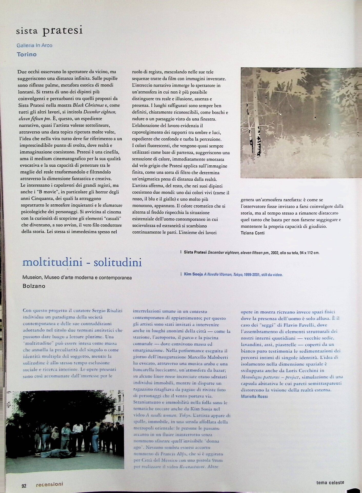 Mariella Rossi, Moltitudini-solitudini, «Tema Celeste», n. 99, settembre-ottobre 2003, p. 92