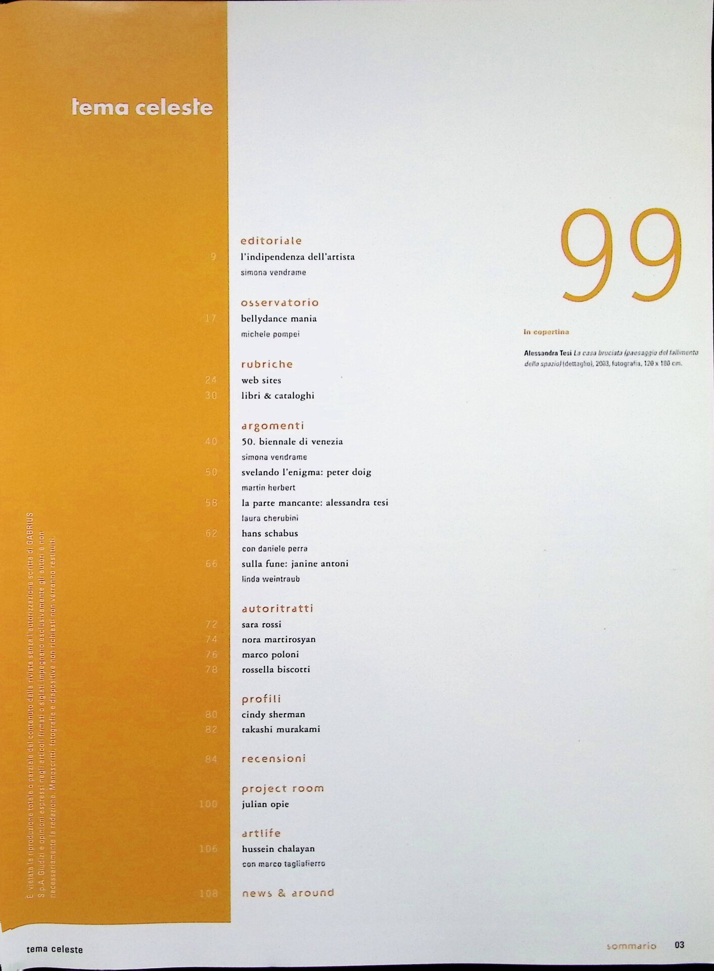 | Cit. bibliografica | Mariella Rossi, Moltitudini-solitudini, «Tema Celeste», n. 99, settembre-ottobre 2003, p. 92 |