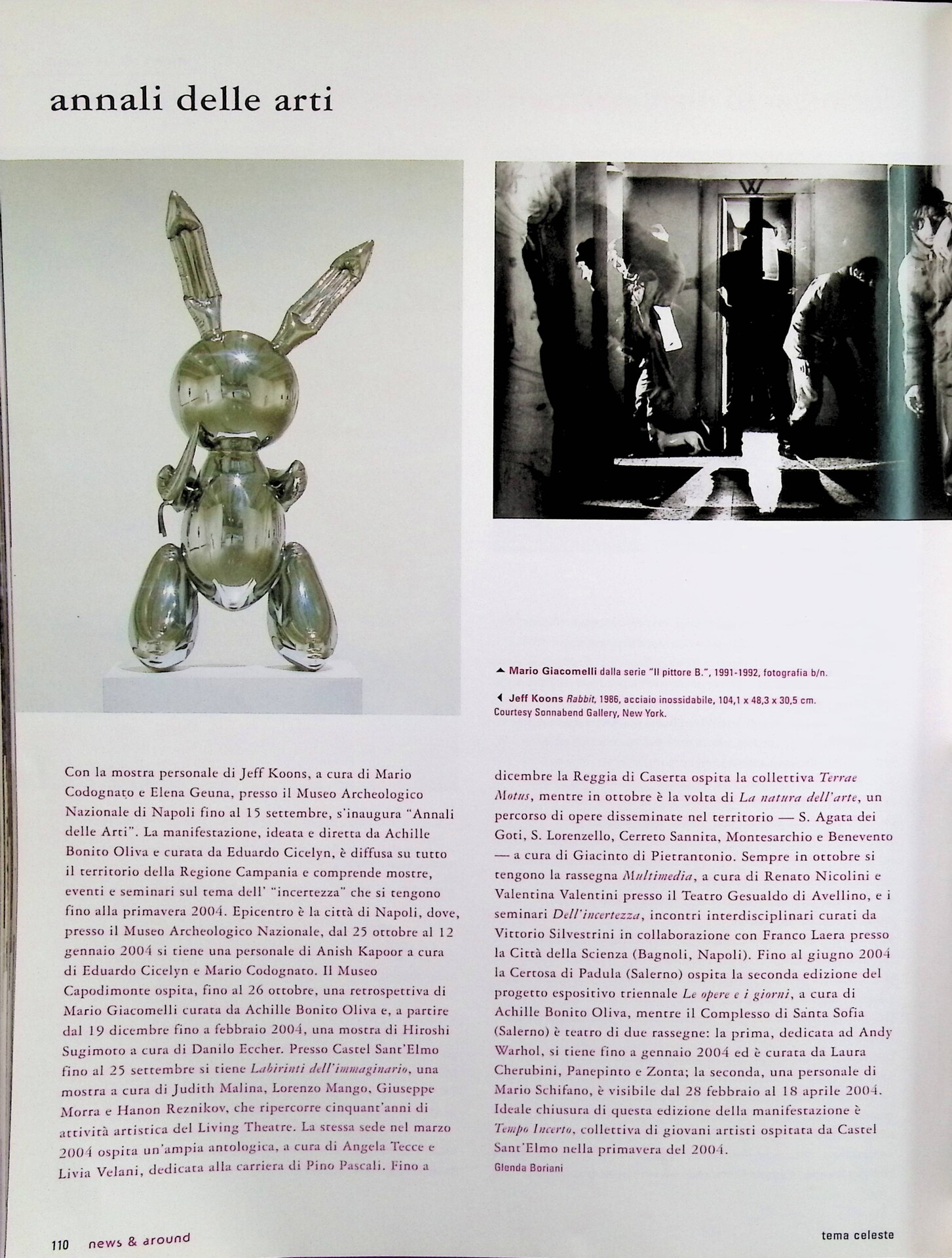 Glenda Boriani, Annali delle arti, «Tema Celeste», n. 99, settembre-ottobre 2003, p. 110
