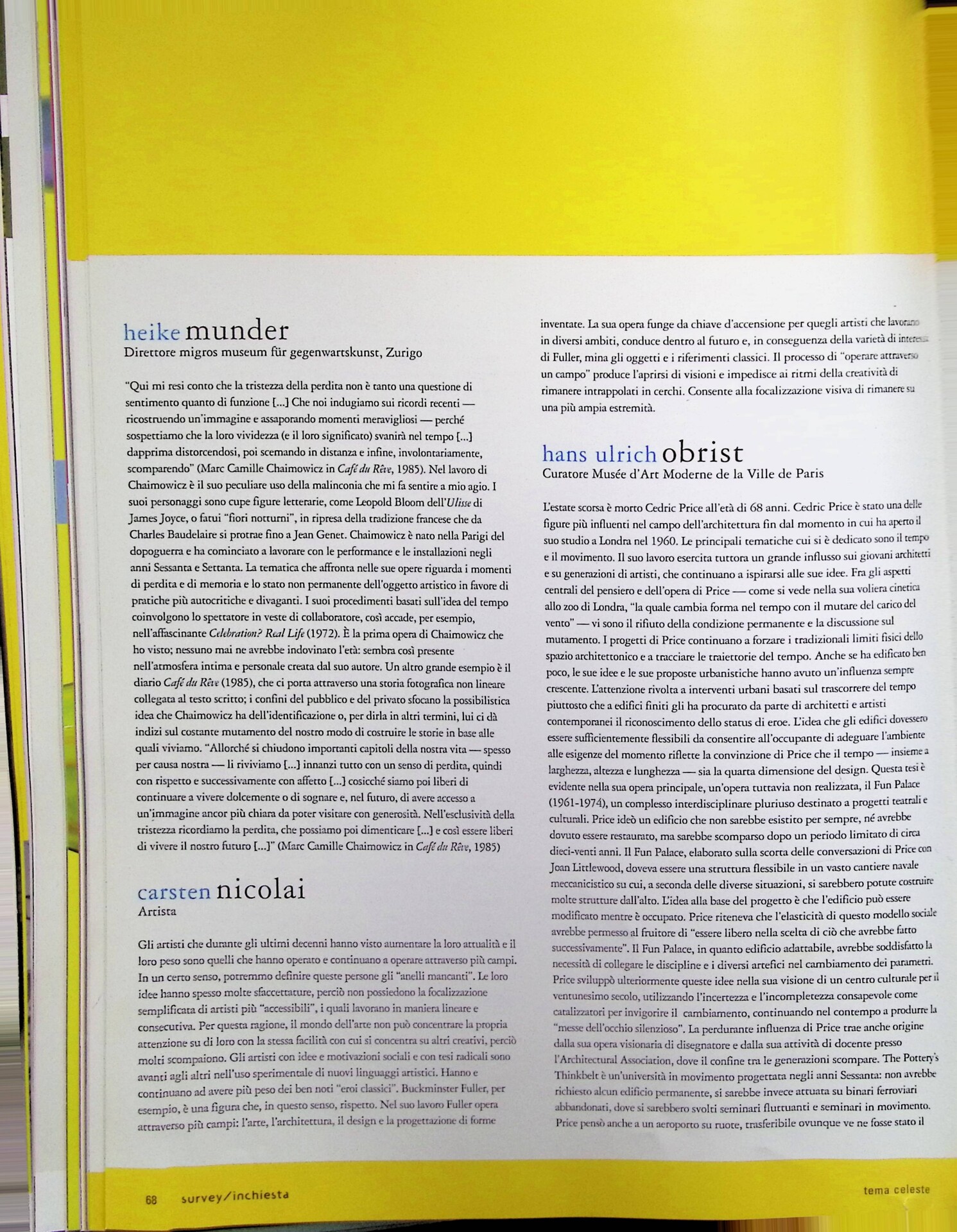 | Cit. bibliografica | AA. VV., Inchiesta, «Tema Celeste», n. 100, novembre-dicembre 2003, pp. 64-69 |