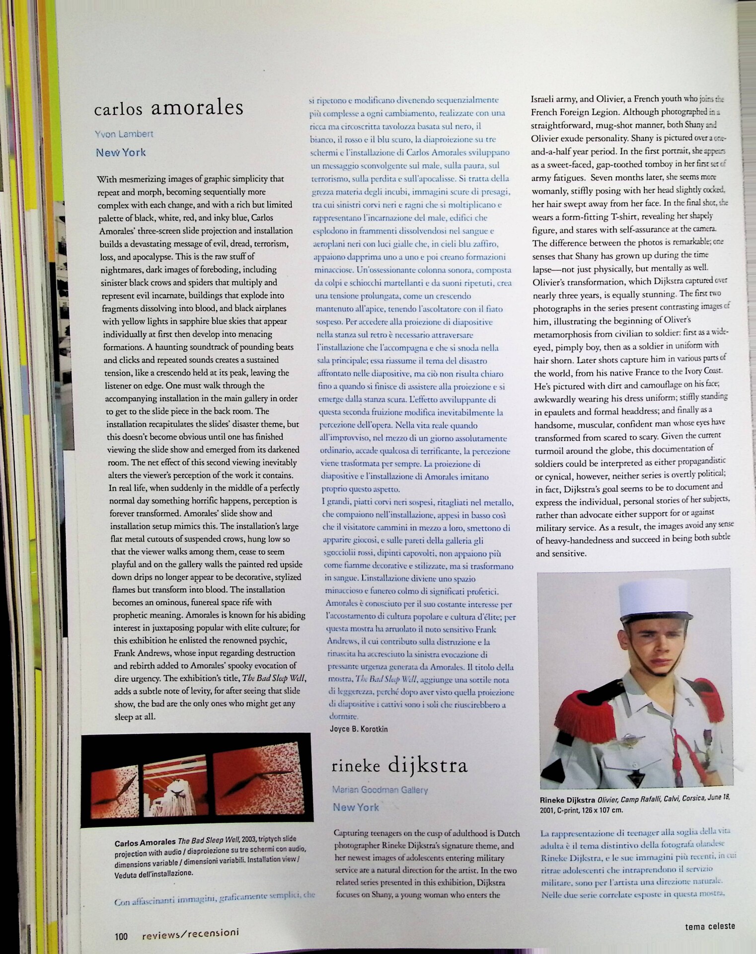 Joyce Korotkin, Carlos Amorales, «Tema Celeste», n. 100, novembre-dicembre 2003, p. 100