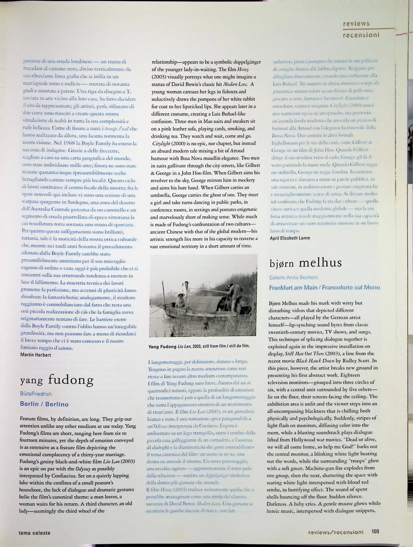 April Elizabeth Elizabeth Lamm, Yang Fudong, «Tema Celeste», n. 100, novembre-dicembre 2003, p. 109