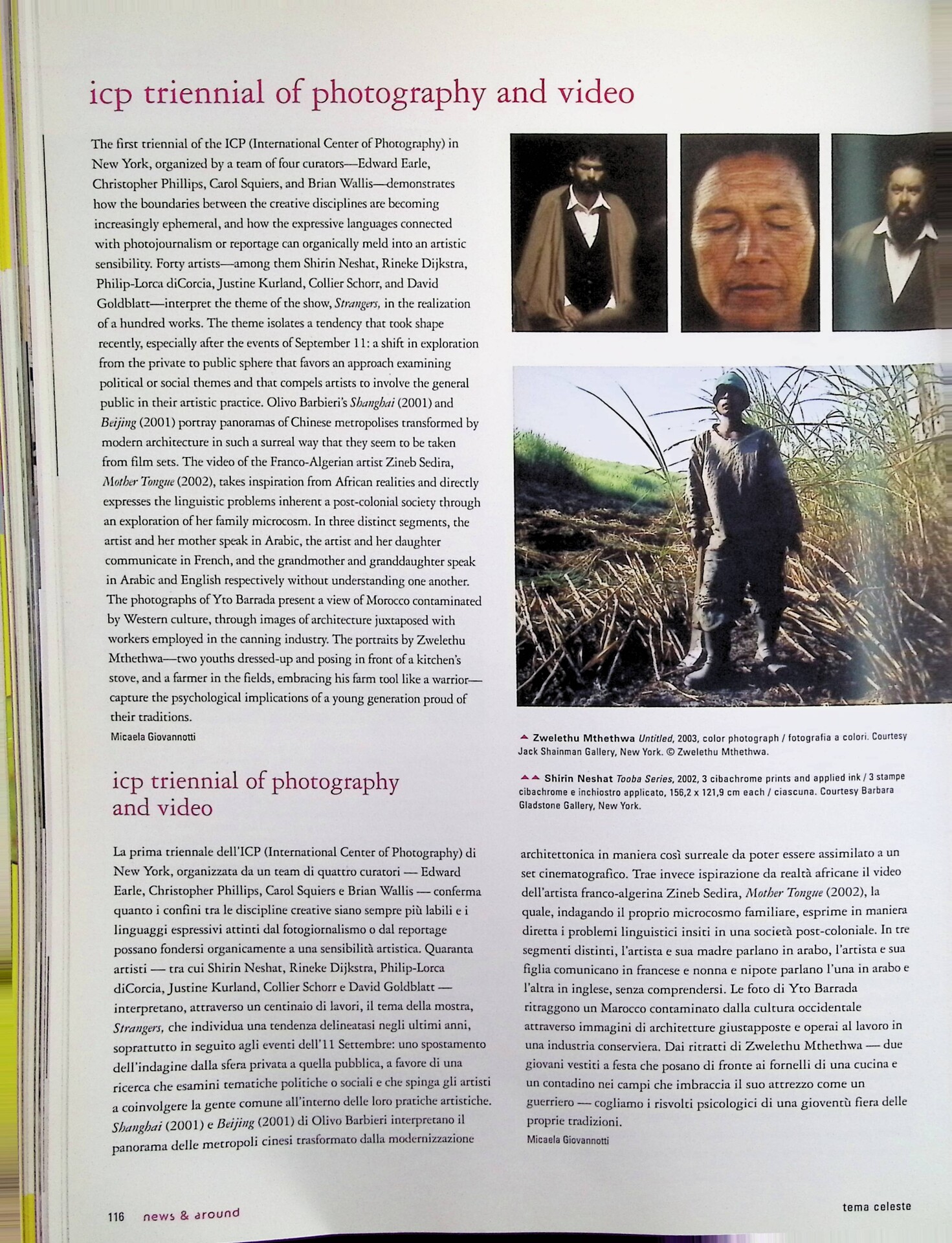 Micaela Giovannotti, Icp triennal of photography and video, «Tema Celeste», n. 100, novembre-dicembre 2003, p. 116