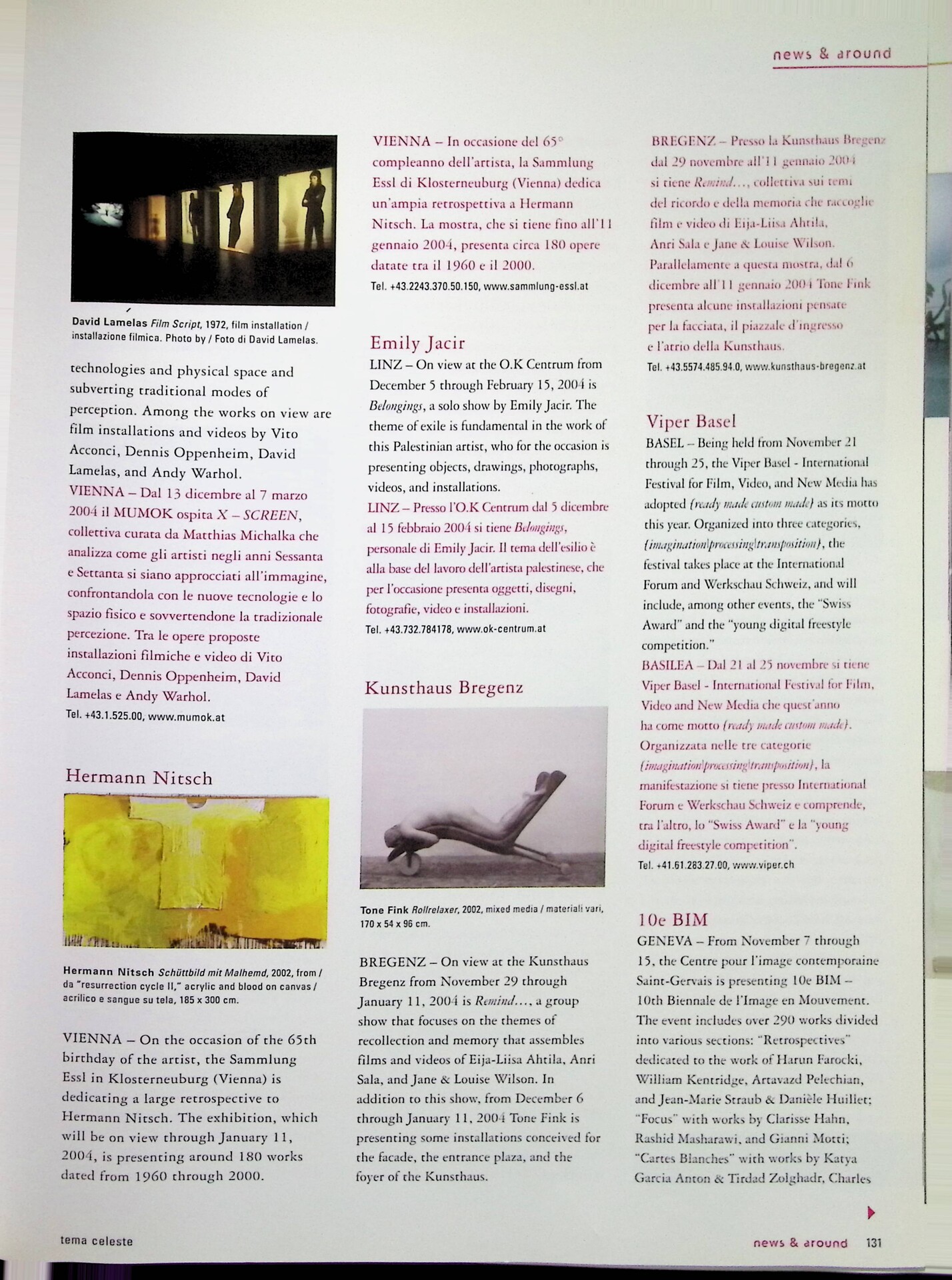 | Descrizione | Segnalazione della collettiva X-SCREEN al MUMOK di Vienna, con la partecipazione di David Lamelas [argentino]. |