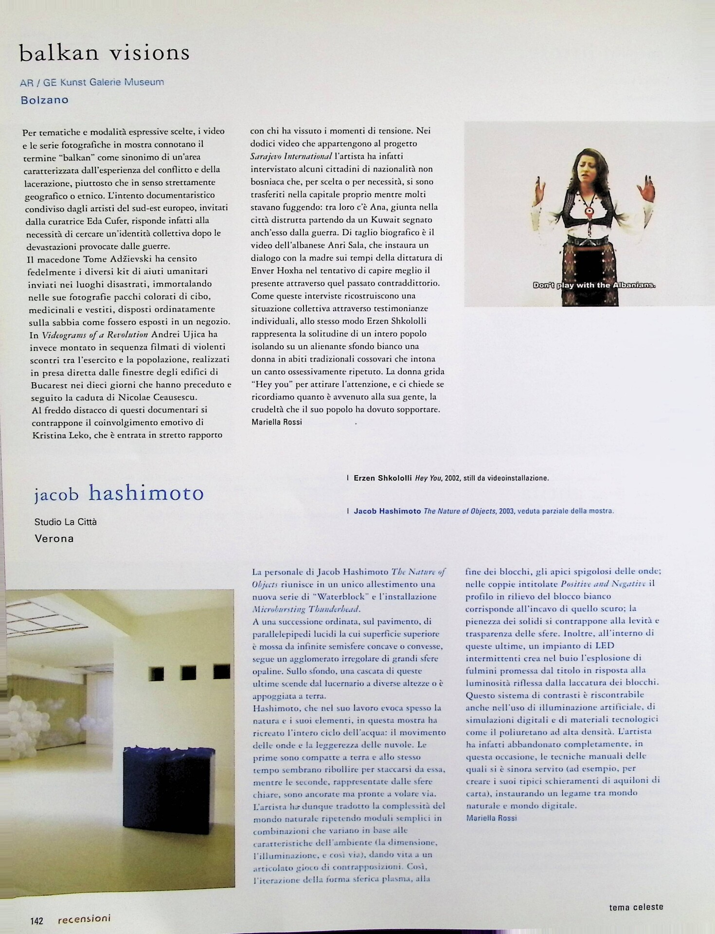 | Cit. bibliografica | Mariella Rossi, Balkan visions, «Tema Celeste», n. 100, novembre-dicembre 2003, p. 142 |