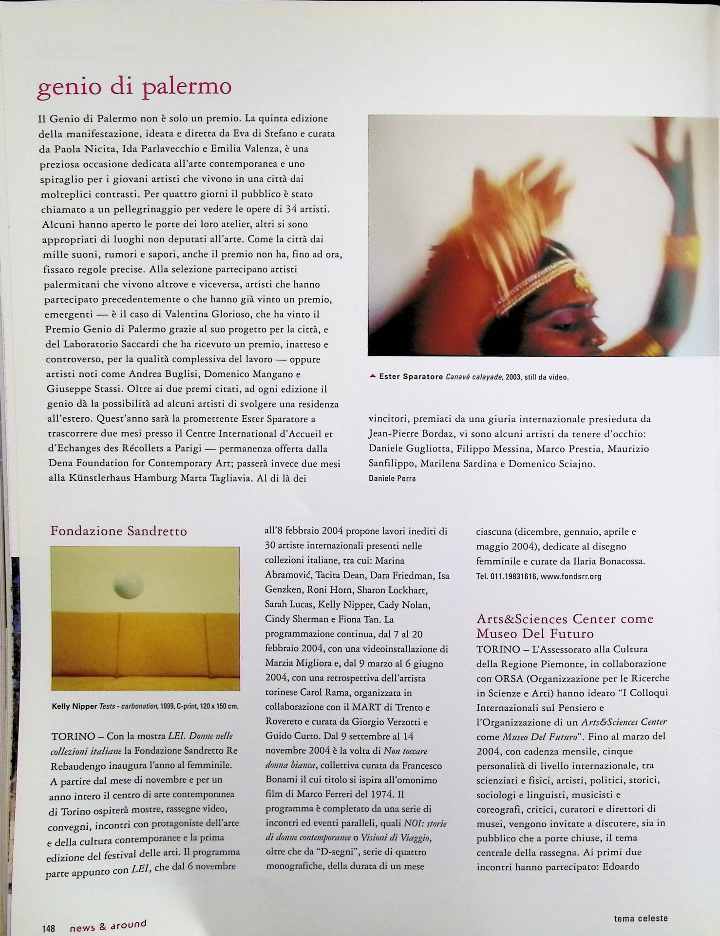 Fondazione Sandretto, «Tema Celeste», n. 100, novembre-dicembre 2003, p. 148