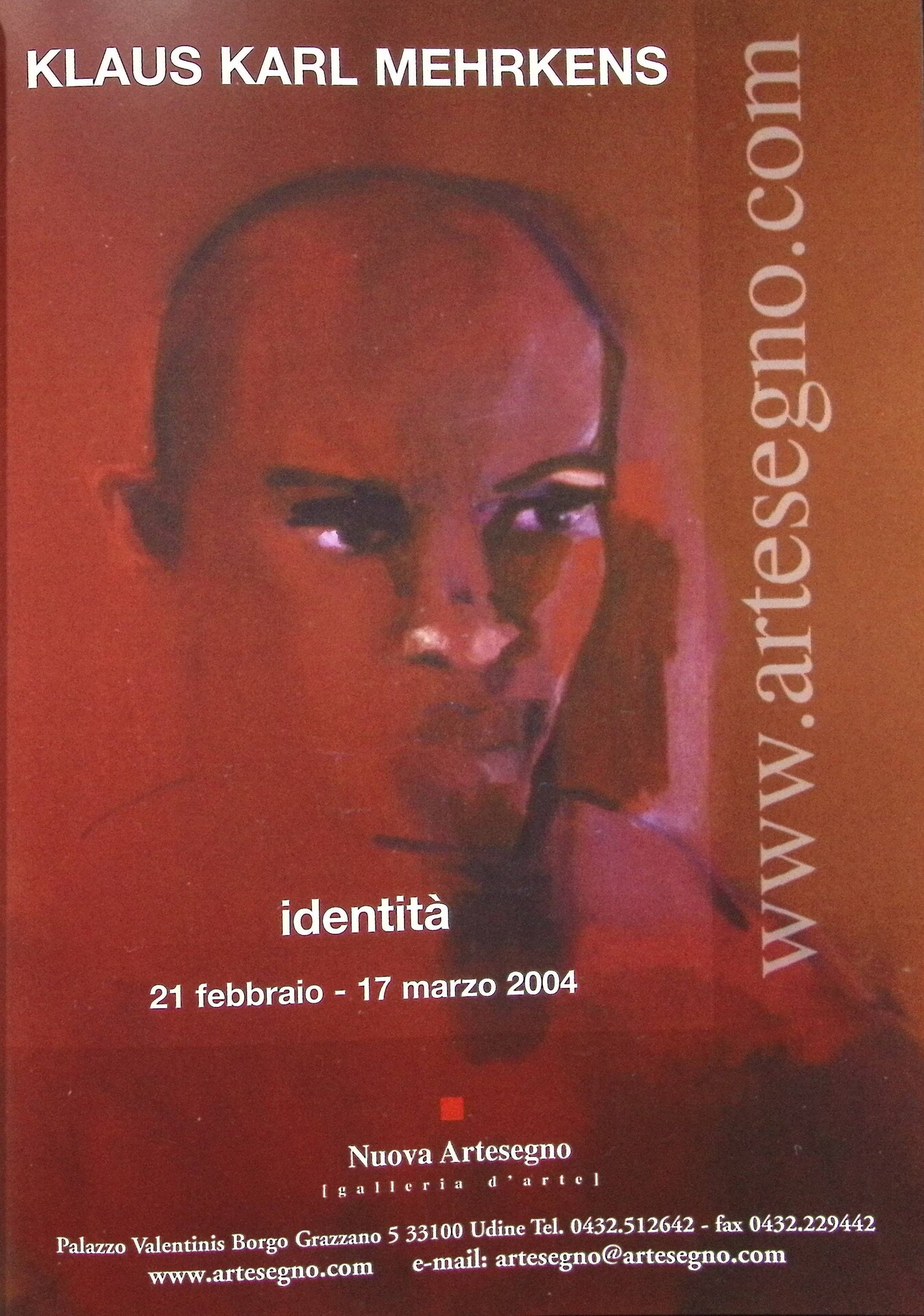 | Descrizione | Pubblicità della mostra Identità di Klaus Karl Mehrkens alla galleria Nuova Artesegno di Udine: nella locandina il ritratto di una persona afrodiscendente. |