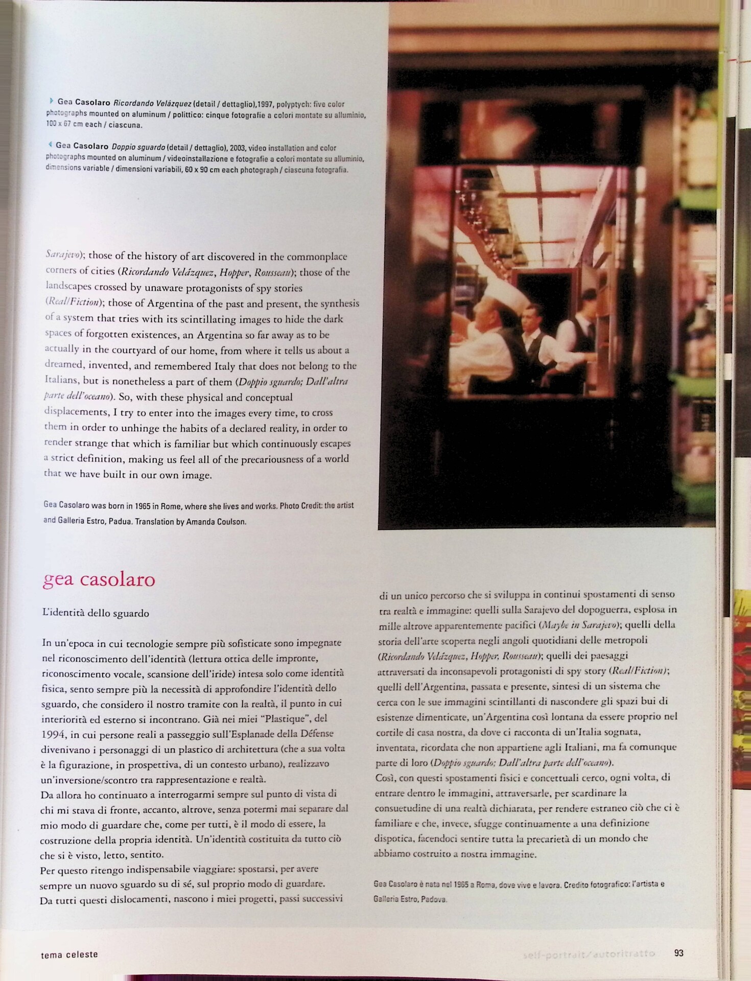 Gea Casolaro, L'identità dello sguardo, «Tema Celeste», n. 102, marzo-aprile 2004, pp. 92-93
