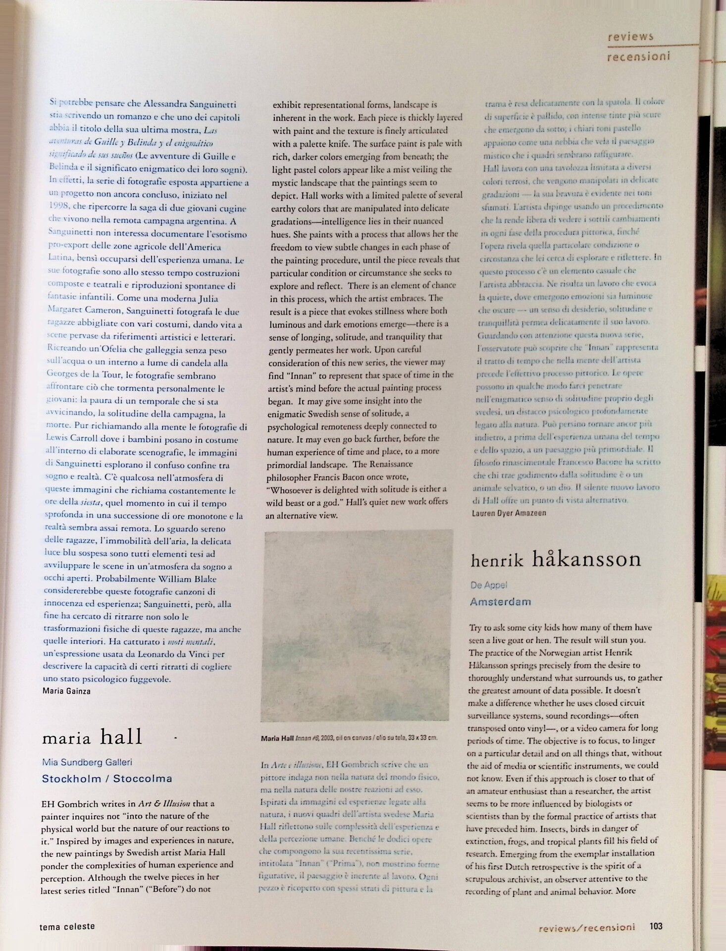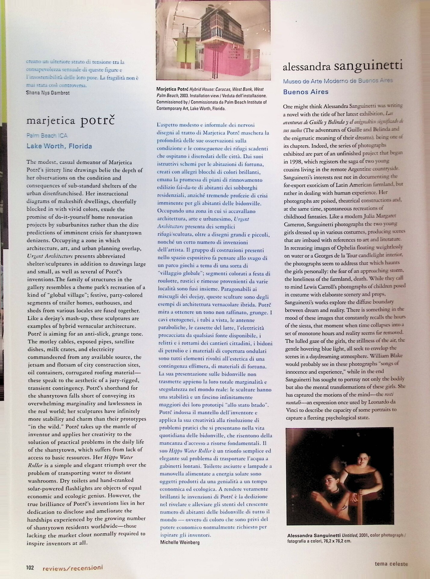 Maria Gainza, Alessandra Sanguinetti, «Tema Celeste», n. 102, marzo-aprile 2004, pp. 102-103