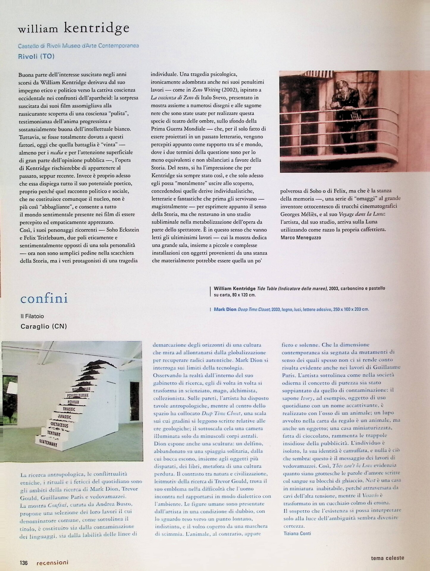 Marco Meneguzzo, William Kentridge, «Tema Celeste», n. 102, marzo-aprile 2004, p. 136