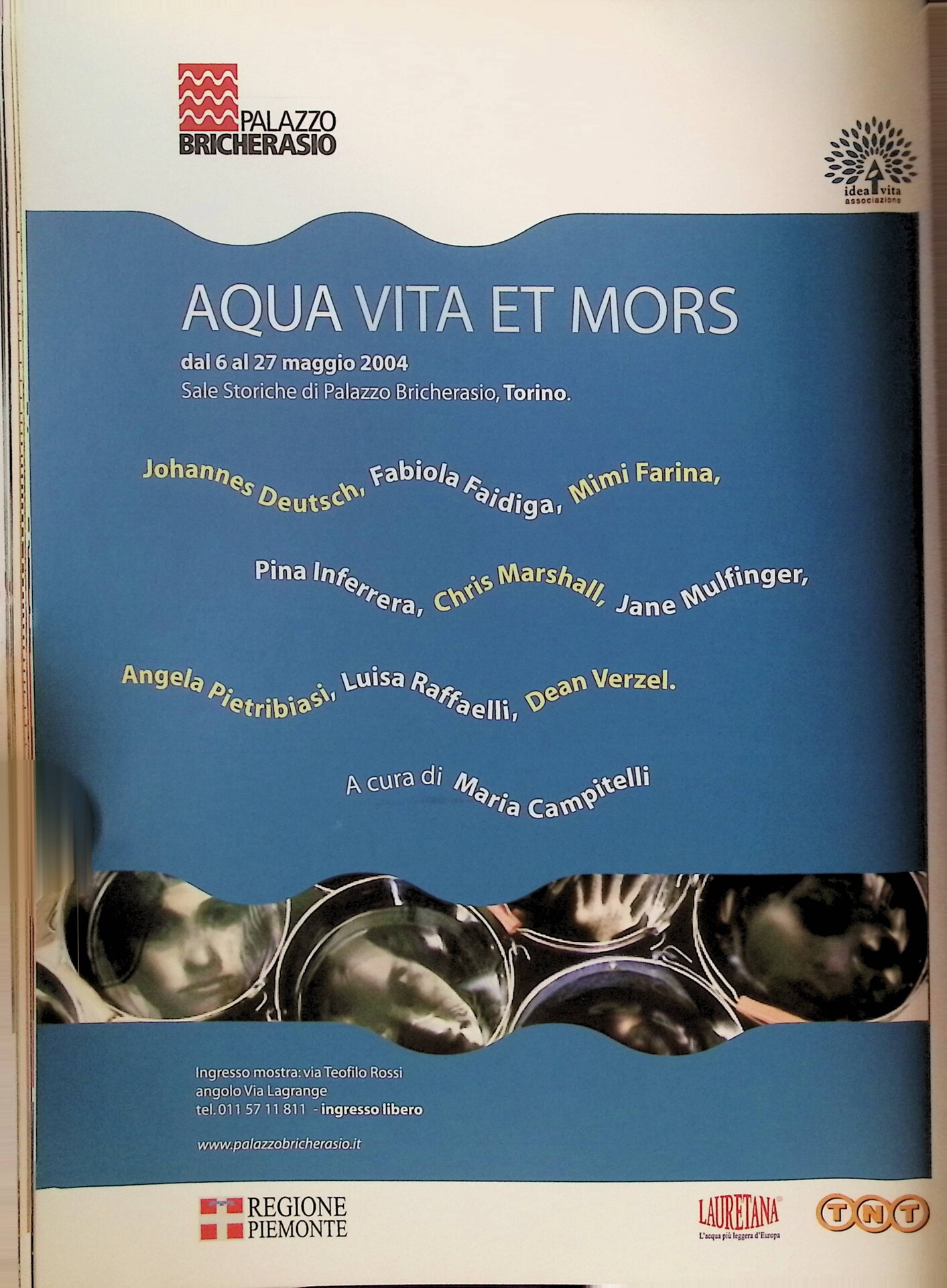 | Descrizione | Pubblicità della mostra Aqua Vita et Mors nelle Sale Storiche di Palazzo Bricherasio di Torino con la partecipazione di Dean Verzel [sloveno]. |