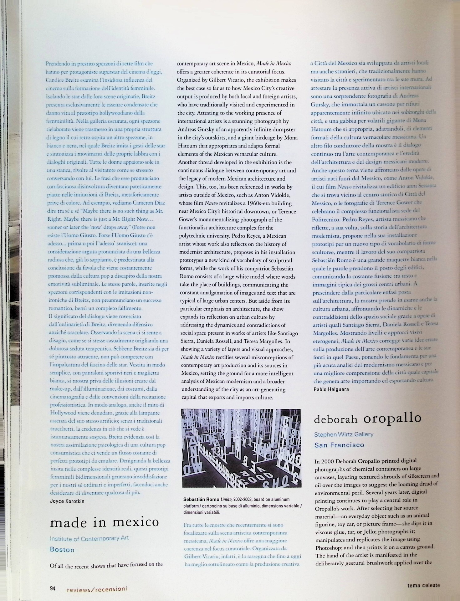 | Cit. bibliografica | Pablo Helguera, Made in Mexico, «Tema Celeste», n. 103, maggio-giugno 2004, p. 94 |