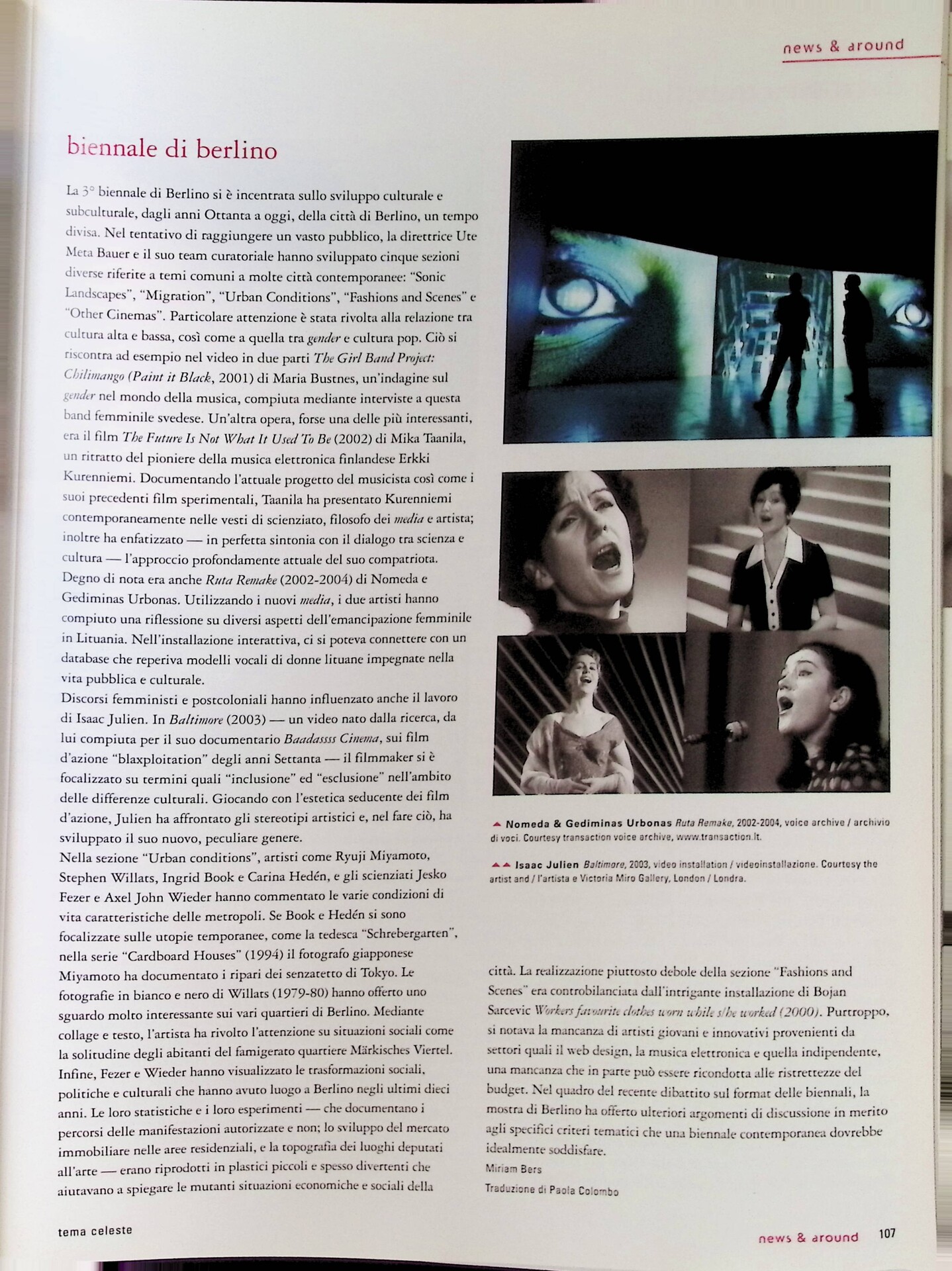 Miriam Bers, Biennale di Berlino, «Tema Celeste», n. 103, maggio-giugno 2004, pp. 106-107