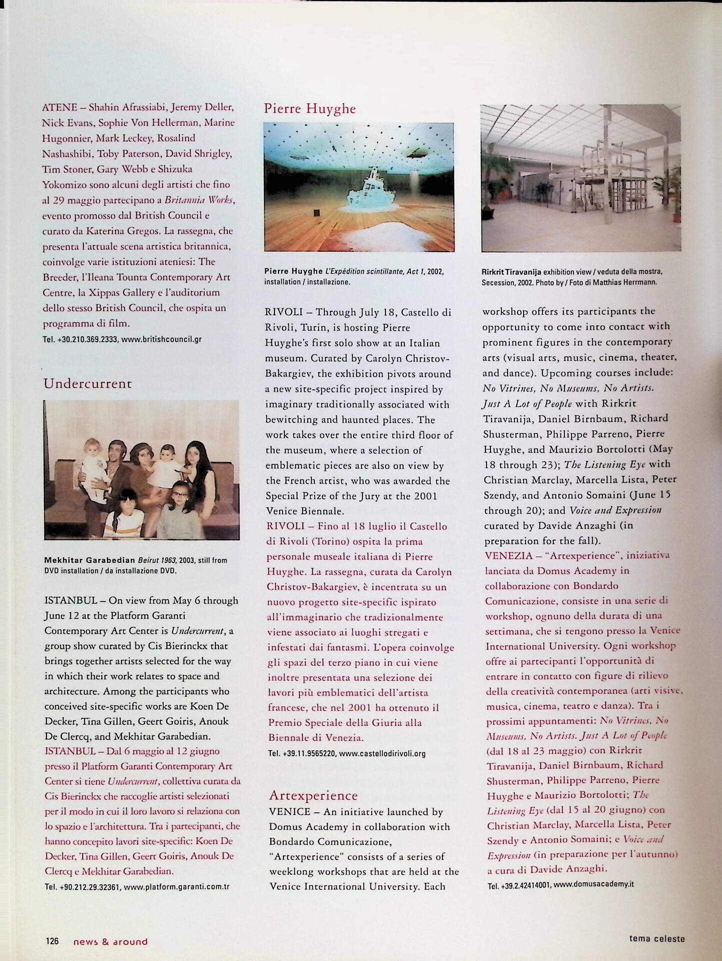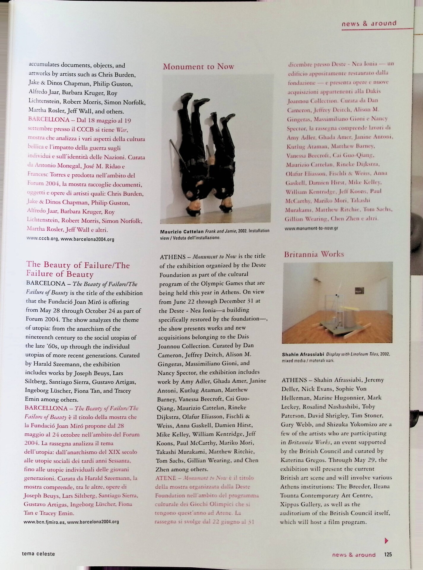 | Descrizione | Segnalazione della mostra Britannia Works, promossa dal British Council di Atene, con la partecipazione di Shahin Afrassiabi [iraniano] e Shizuka Yokomizo [giapponese]. |