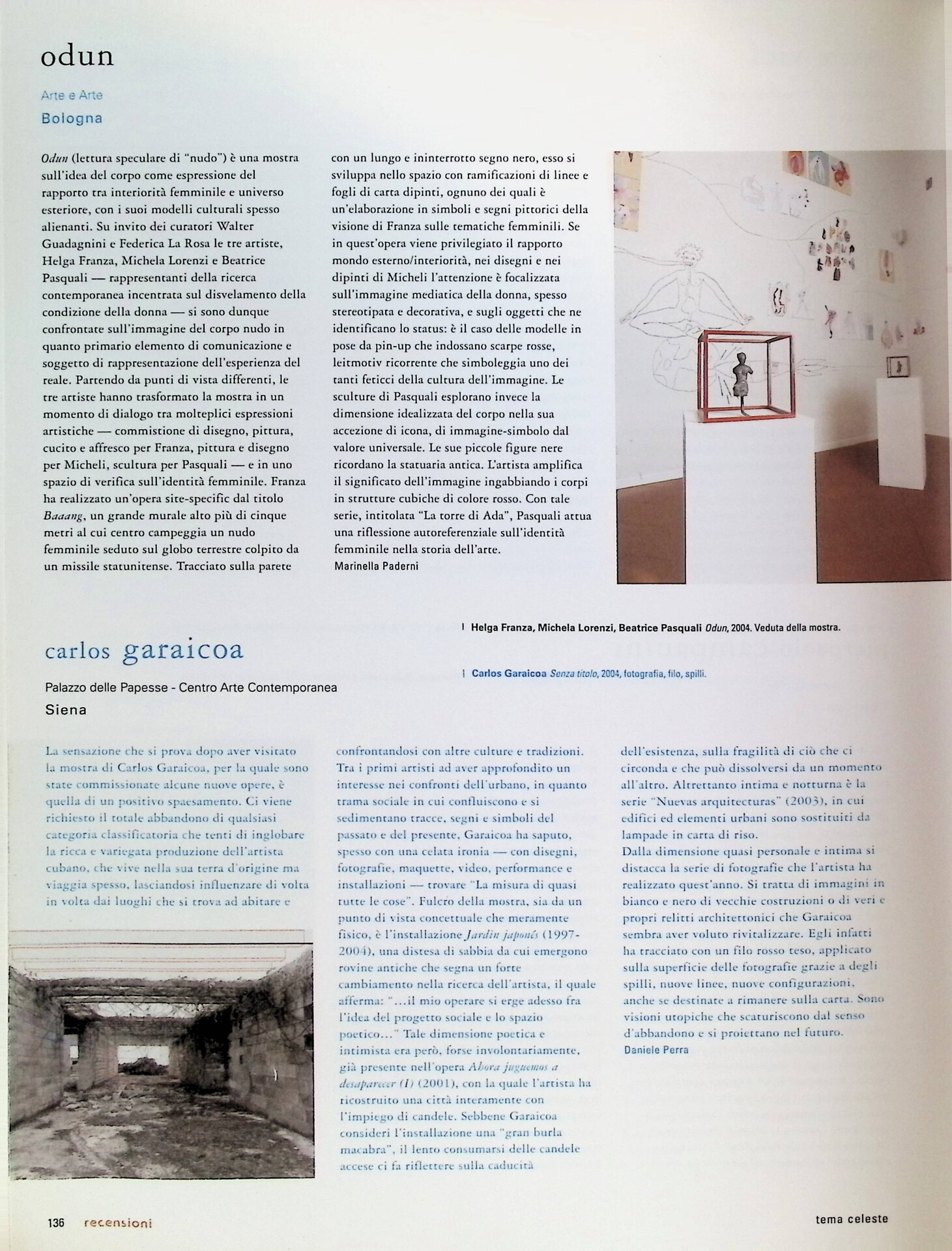 Daniele Perra, Carlos Garaicoa, «Tema Celeste», n. 103, maggio-giugno 2004, p. 136