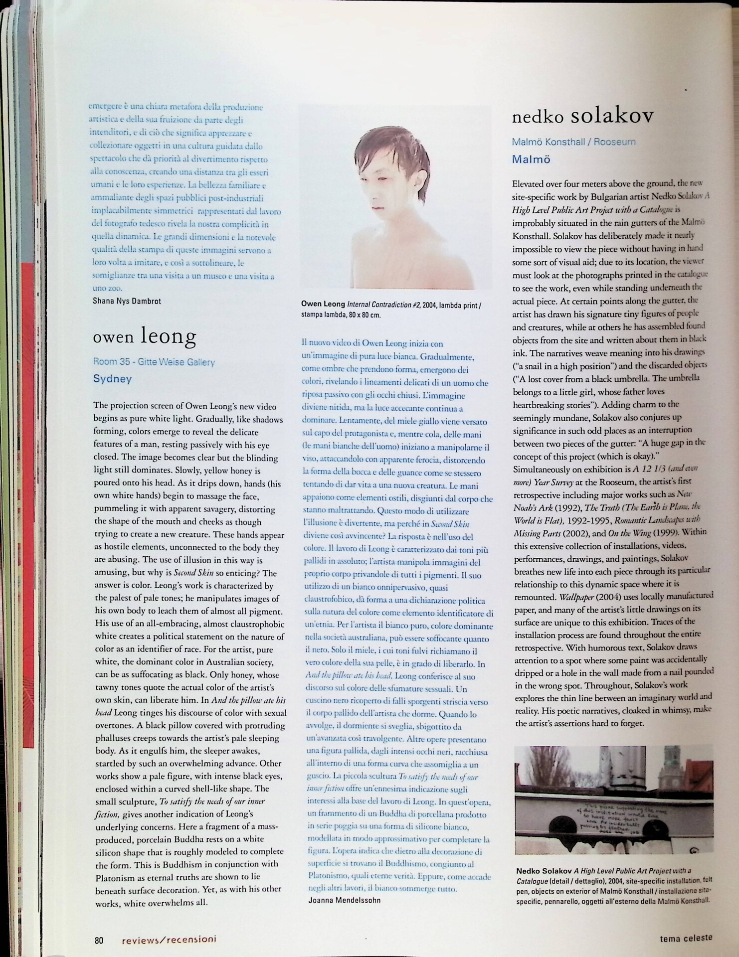 Joanna Mendelssohn, Owen Leong, «Tema Celeste», n. 104, luglio-agosto 2004, p. 80