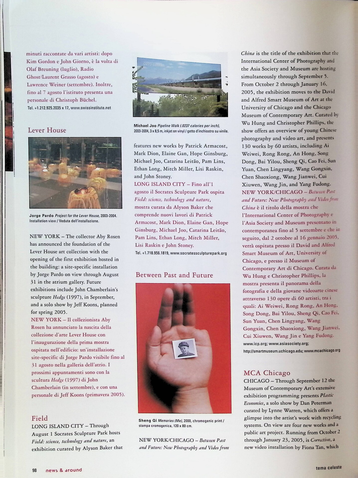 | Descrizione | Segnalazione della mostra Between Past and Future: New Photography and Video from China, ospitata tra New York e Chicago, sulla fotografia e sulla videoarte cinese contemporanea. |