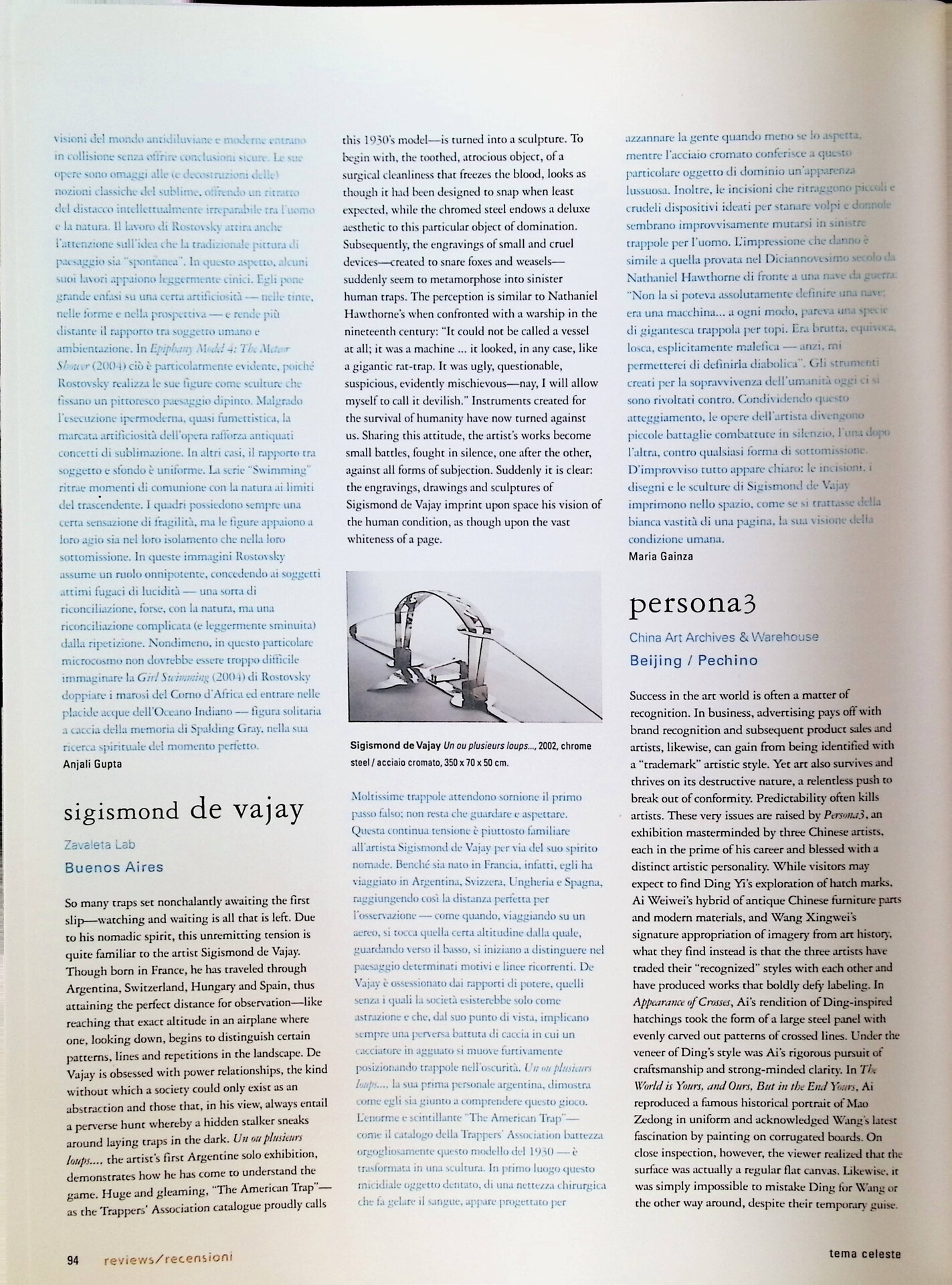 Maria Gainza, Sigismond de Vajay, «Tema Celeste», n. 105, settembre-ottobre 2004, p. 94