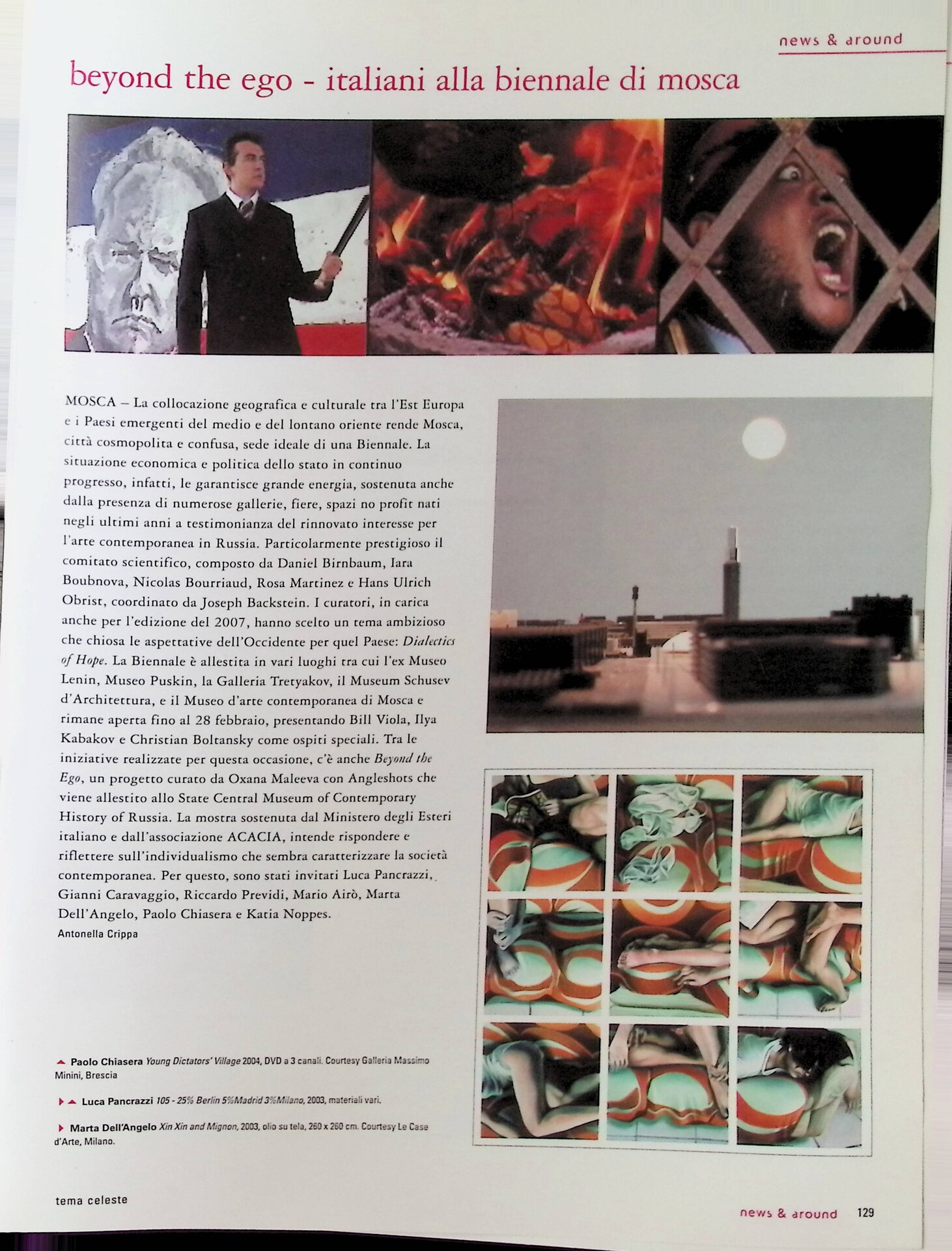 Antonella Crippa, Beyond the ego - italiani alla biennale di Mosca, «Tema Celeste», n. 107, gennaio 2005 - febbraio, p. 129