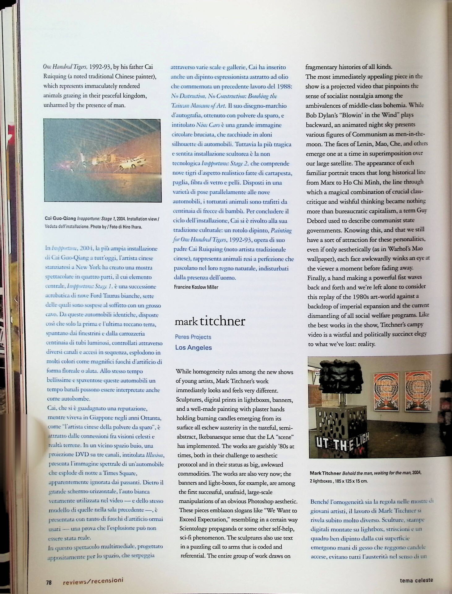Francine Koslow Miller, Cai Guo-Qiang, «Tema Celeste», n. 108, marzo 2005 - aprile, pp. 77-78