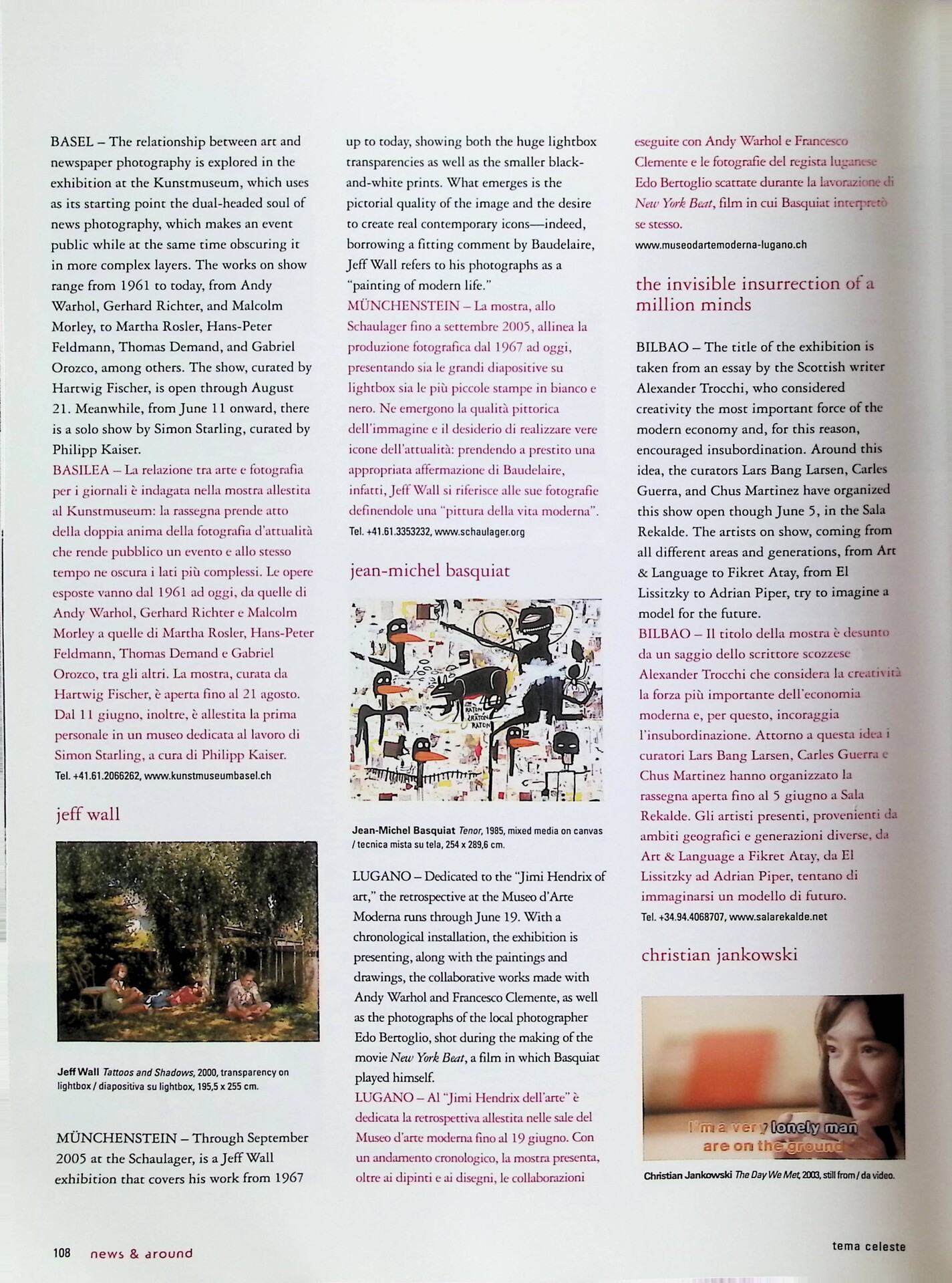 | Cit. bibliografica | Jean-Michel Basquiat, «Tema Celeste», n. 109, maggio-giugno 2005, p. 108 |