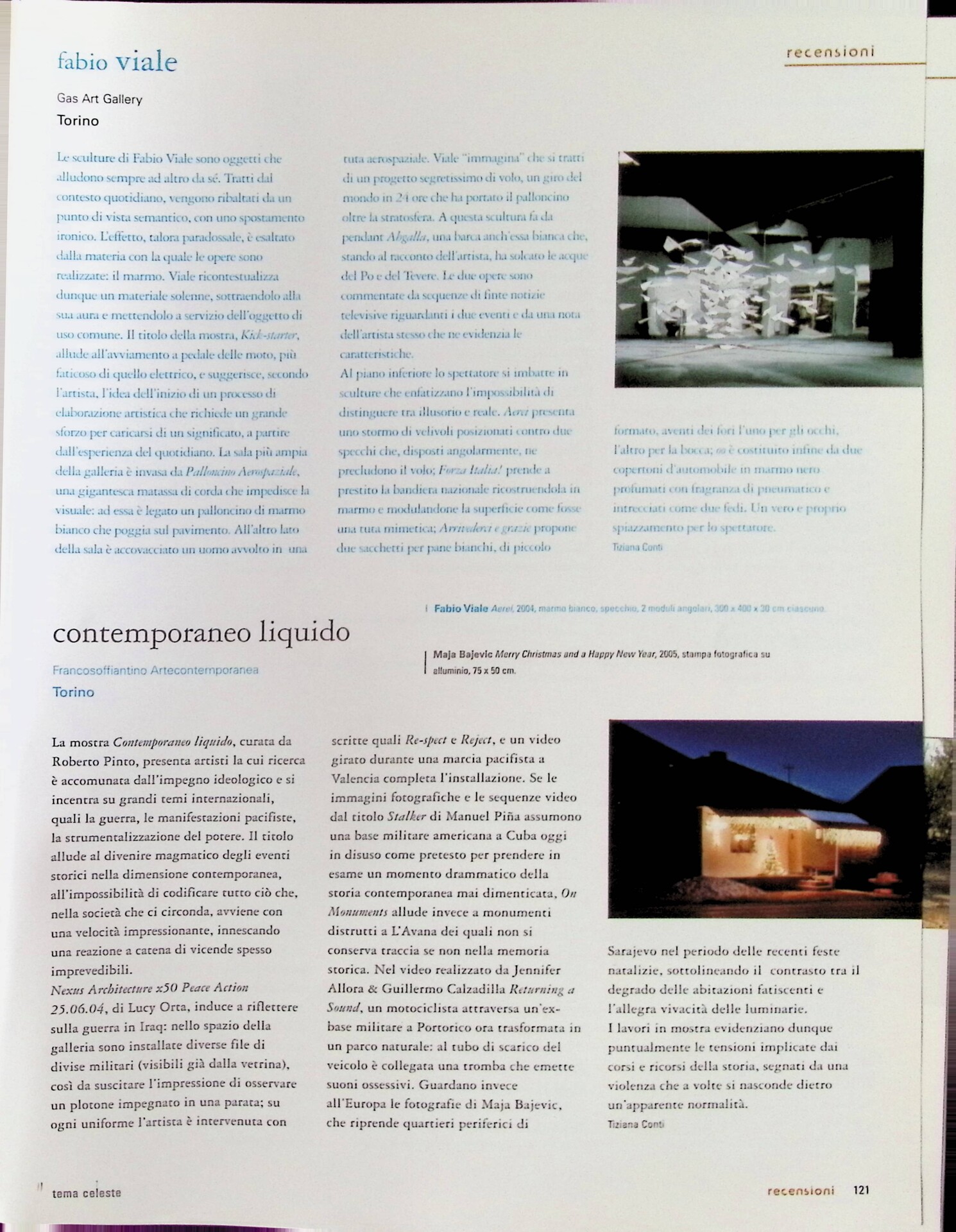 Tiziana Conti, Contemporaneo liquido, «Tema Celeste», n. 109, maggio 2005 - giugno, p. 121