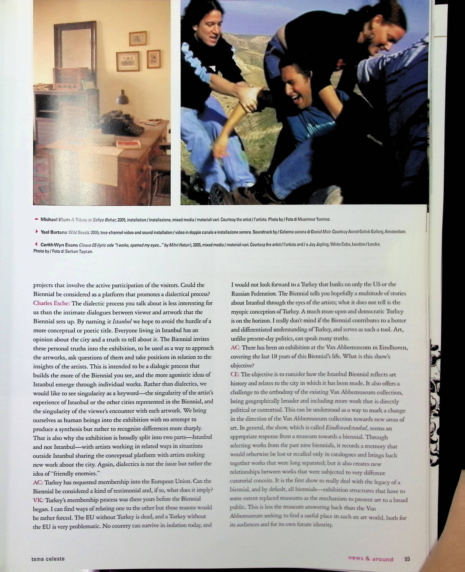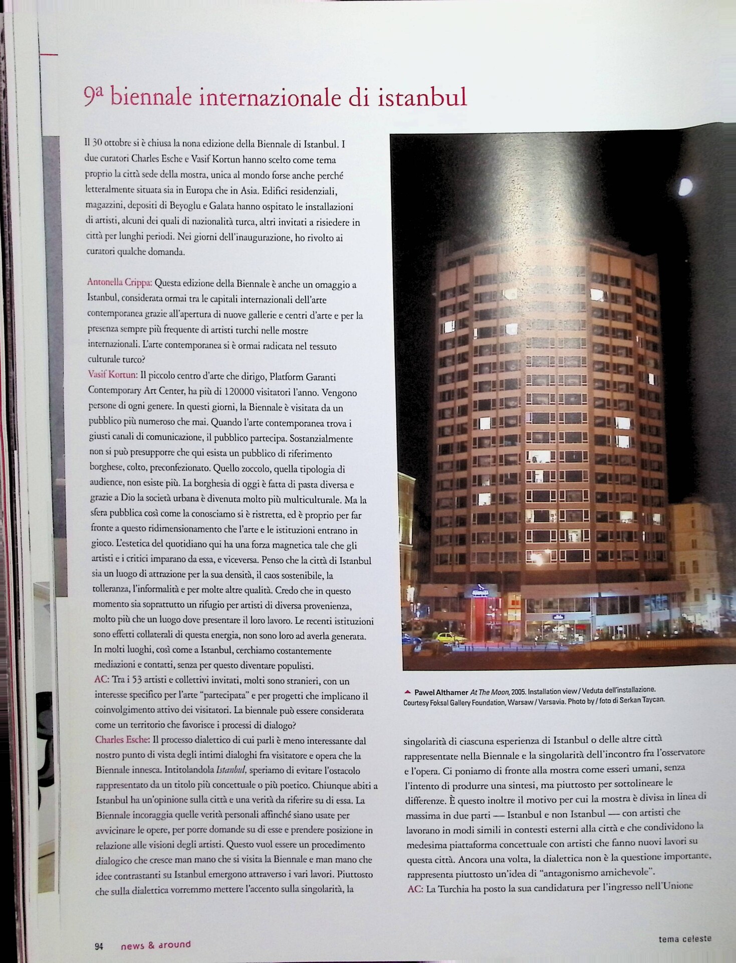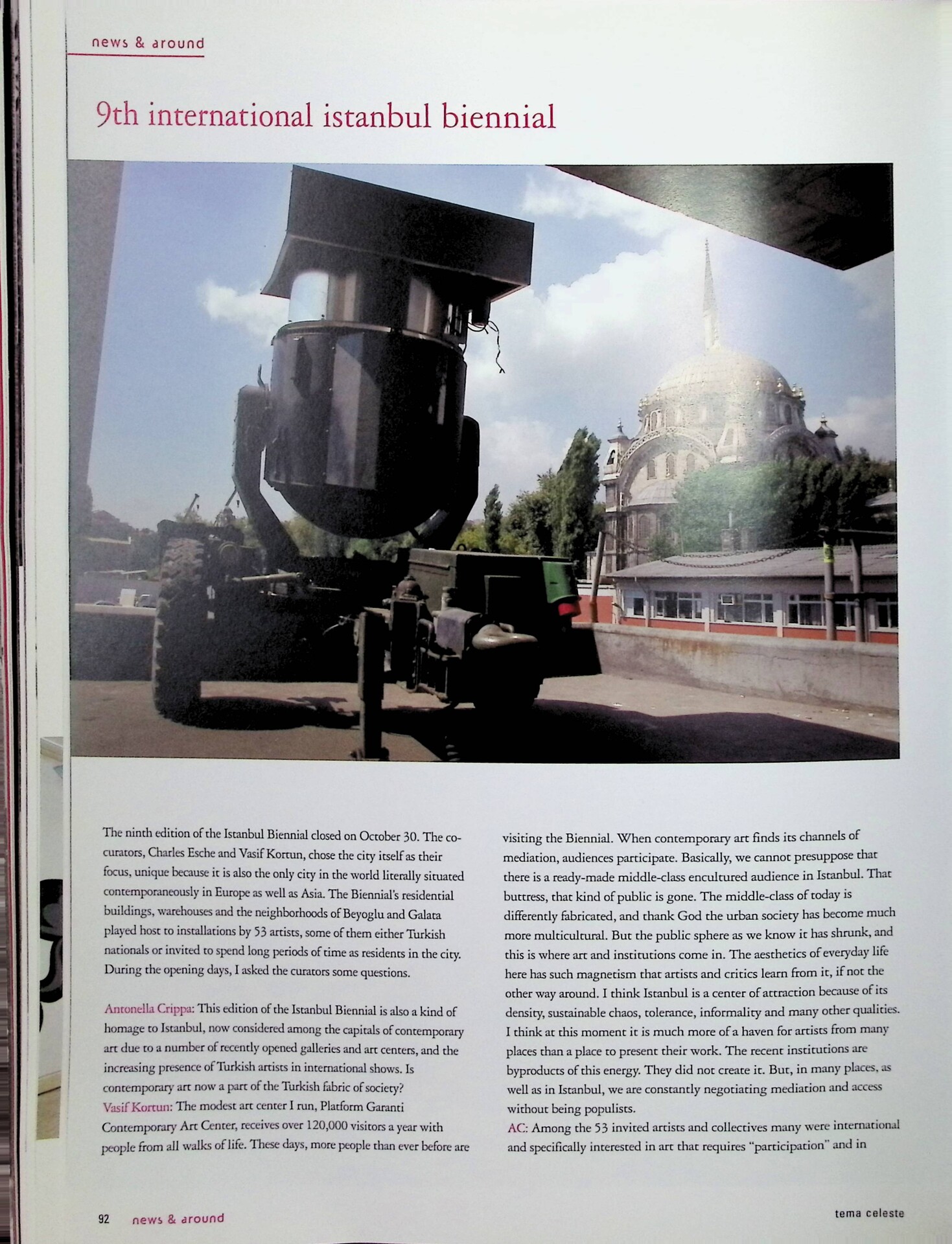 Antonella Crippa, 9° biennale internazionale di Istanbul, «Tema Celeste», n. 112, novembre 2005 - dicembre, pp. 92-95