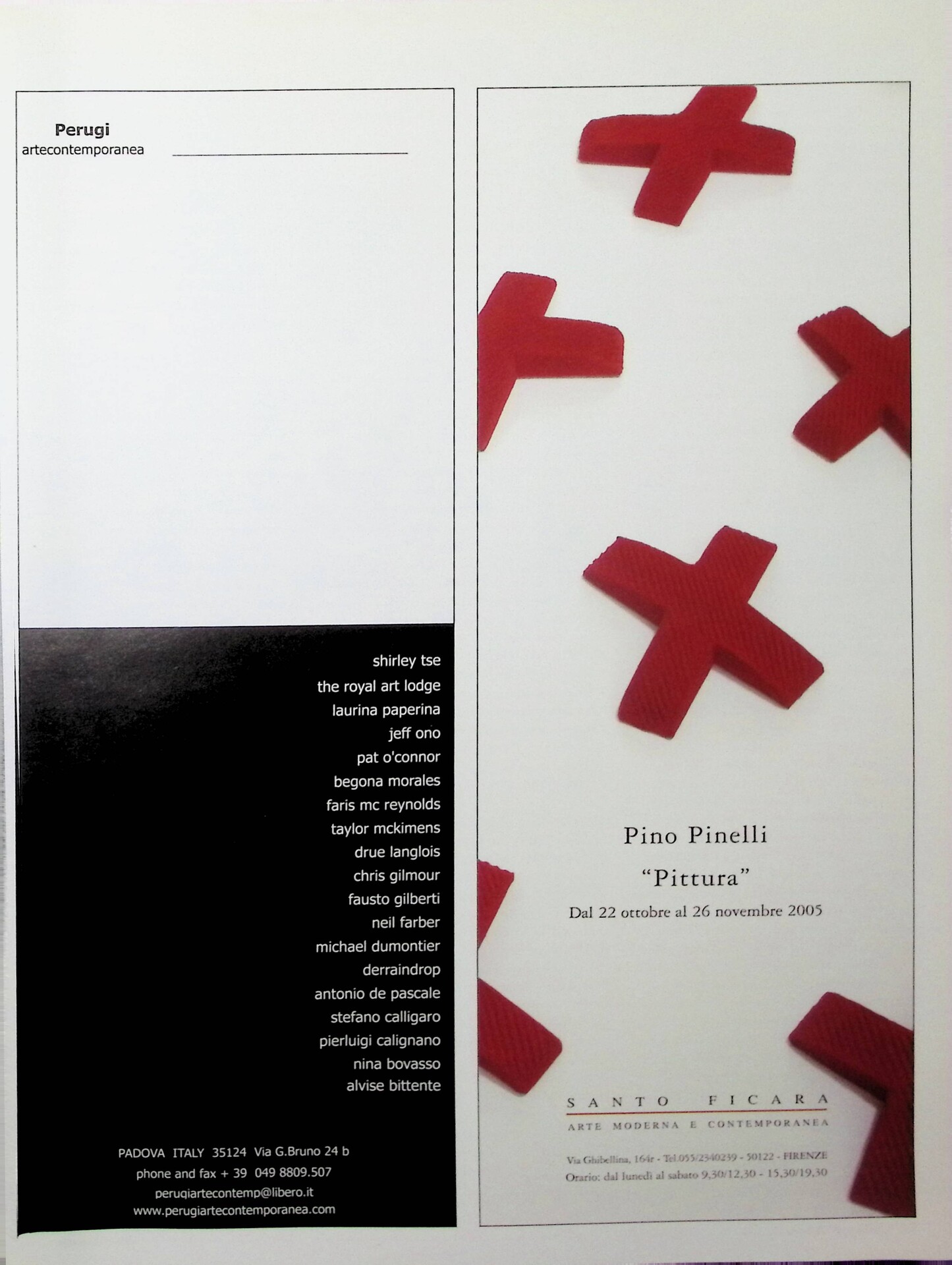 | Descrizione | Pubblicità di una collettiva alla Perugi Arte Contemporanea di Padova, con la partecipazione di Shirley Tse [cinese]. |