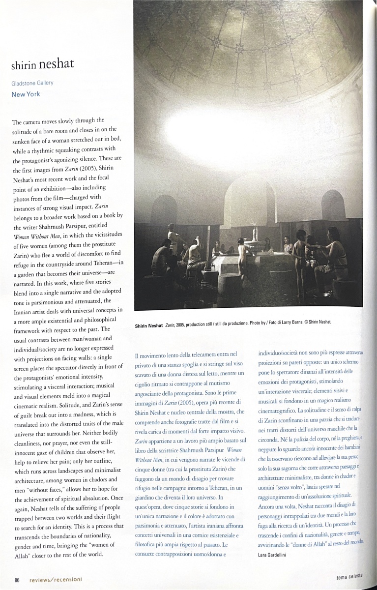 | Cit. bibliografica | Lara Gardellini, Shirin Neshat, «Tema Celeste», n. 113, gennaio-febbraio 2006, p. 86 |