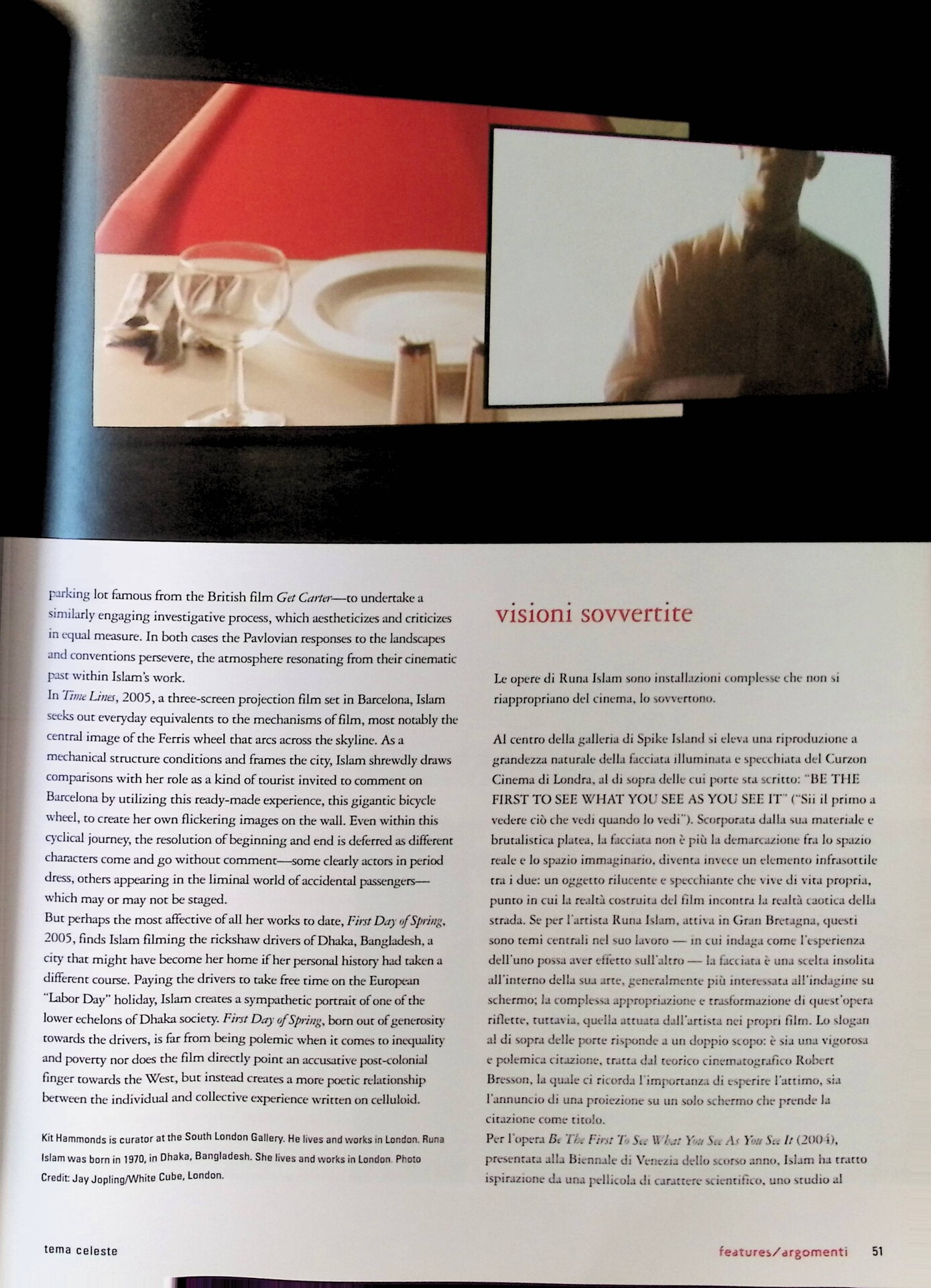 | Descrizione | Articolo dedicato alla pratica artistica di Runa Islam [bangladese]. |