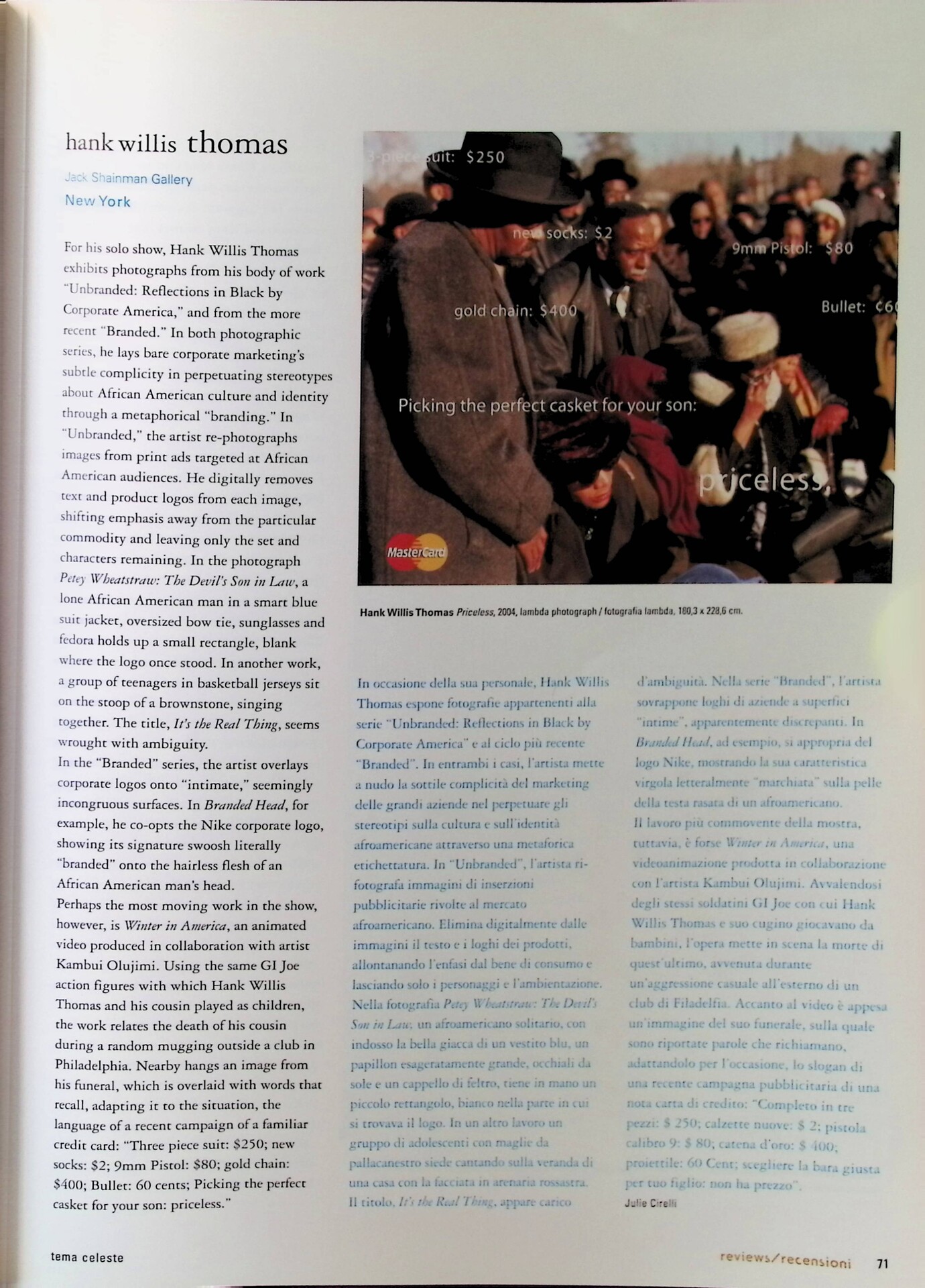 Julie Cirelli, Hank Willis Thomas, «Tema Celeste», n. 116, luglio-agosto 2006, p. 71