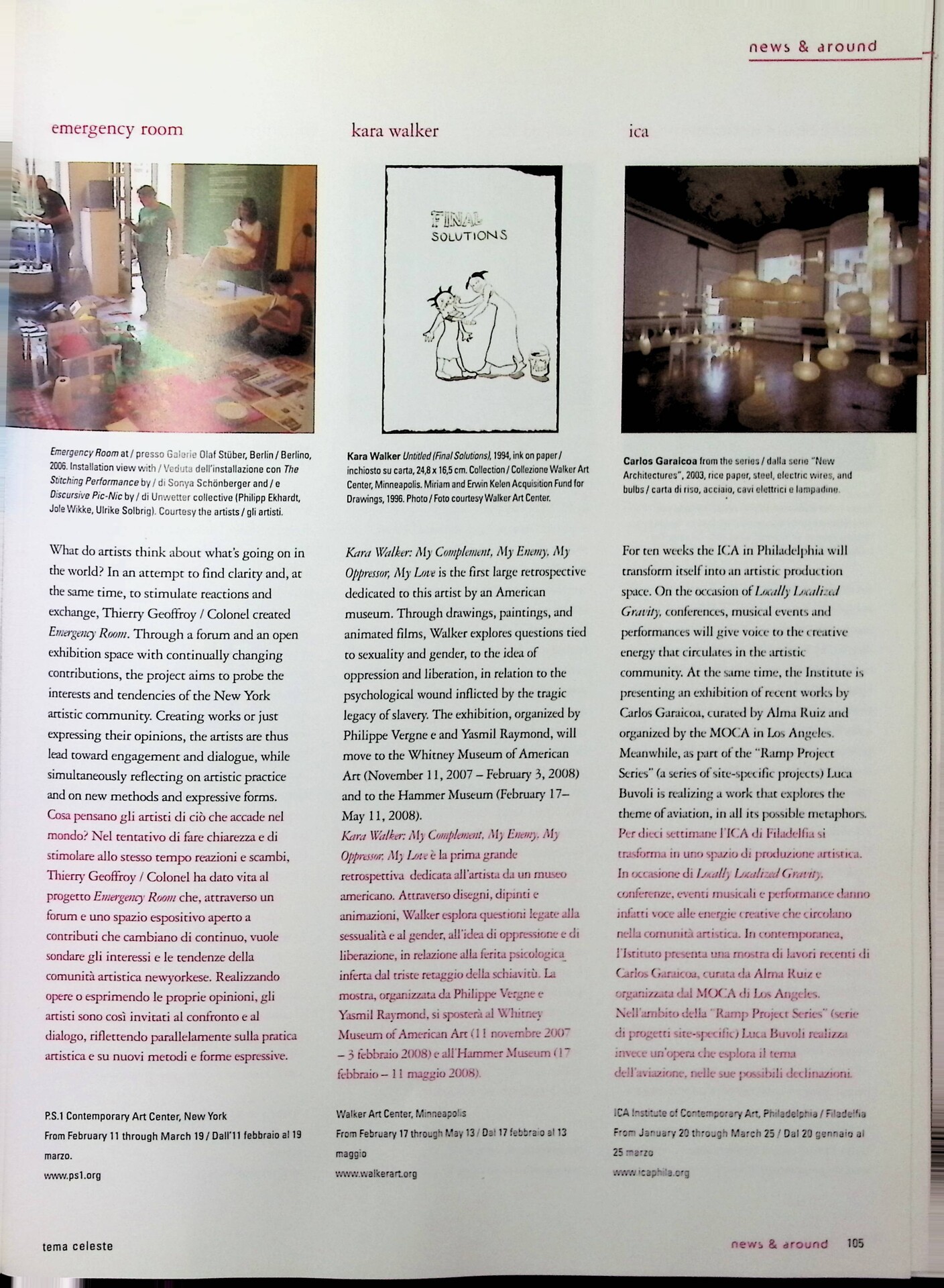 | Descrizione | Segnalazione della mostra di Carlos Garaicoa [cubano] all'ICA di Filadelfia. |