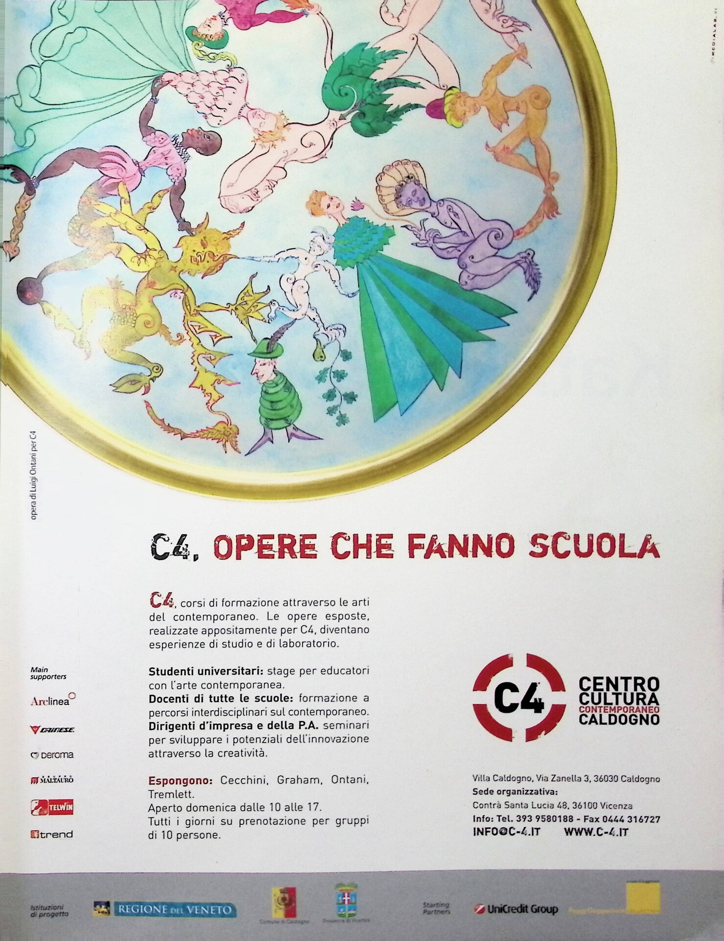 | Descrizione | Pubblicità dei corsi di formazione C4. Opere che fanno scuola, promossi dal Centro Cultura Contemporanea di Caldogno, in cui compare un’opera di Luigi Ontani con una figura afrodiscendente. |