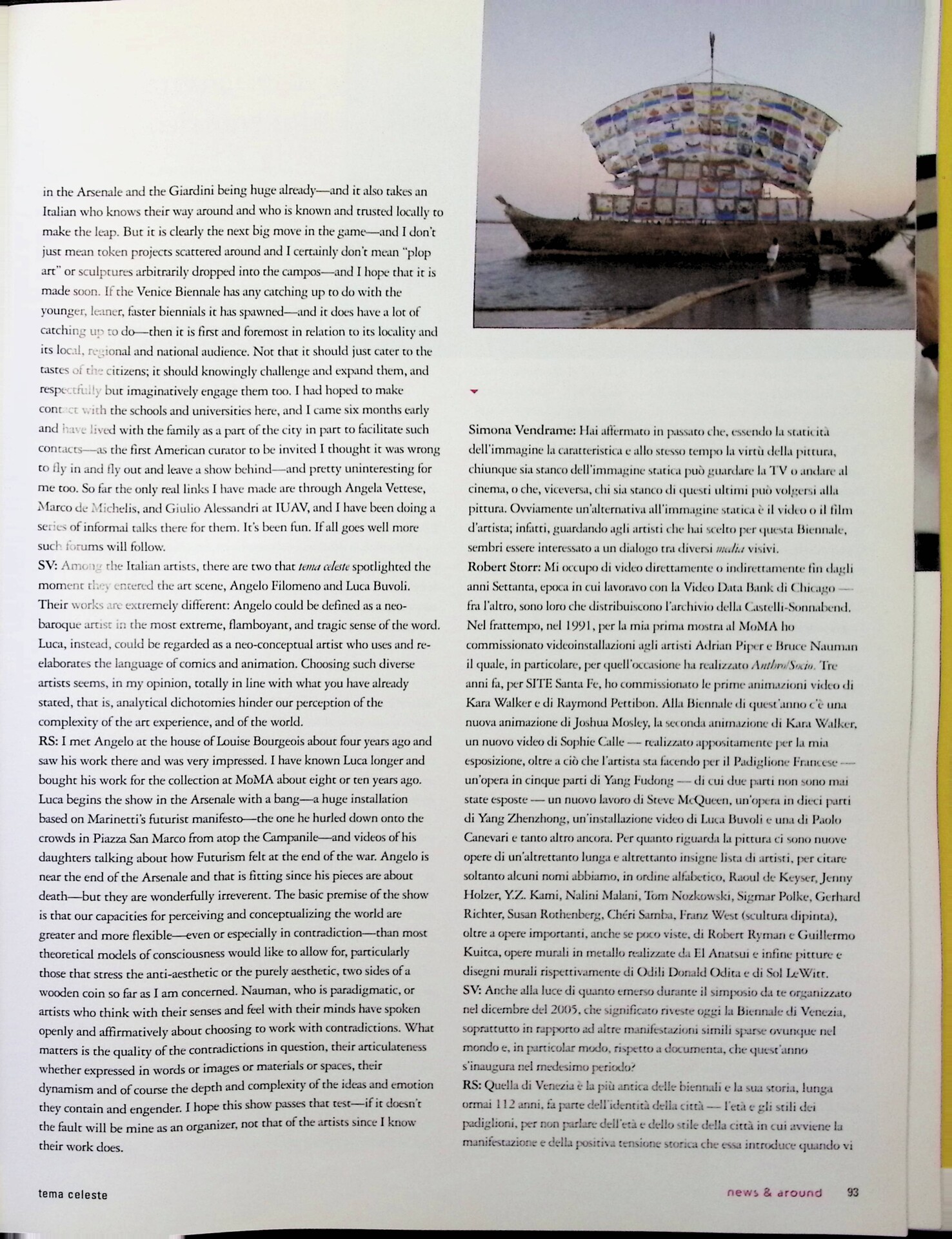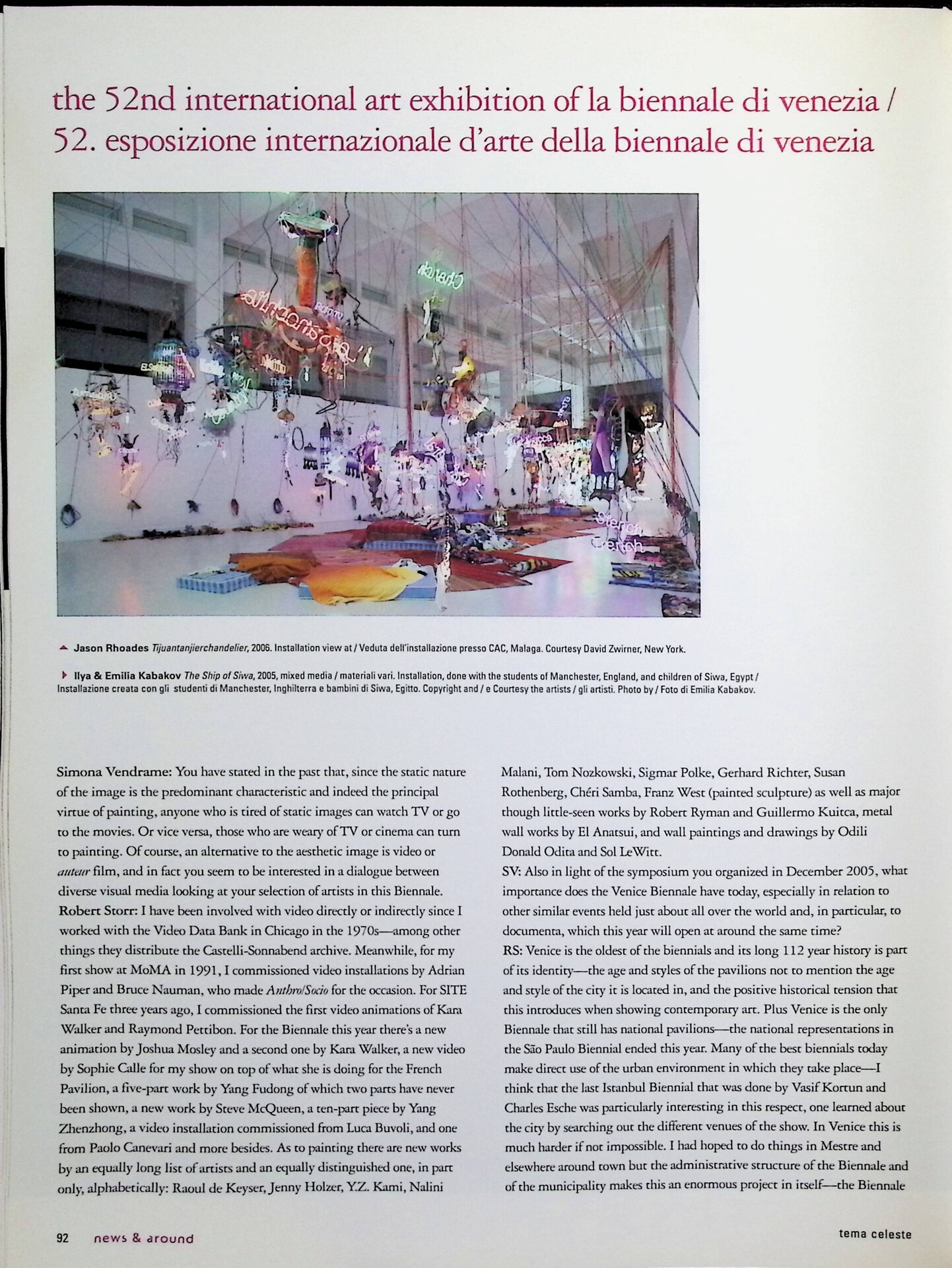Simona Vendrame, The 52nd International Art Exhibition of La Biennale di Venezia, «Tema Celeste», n. 121, maggio-giugno 2007, pp. 92-94