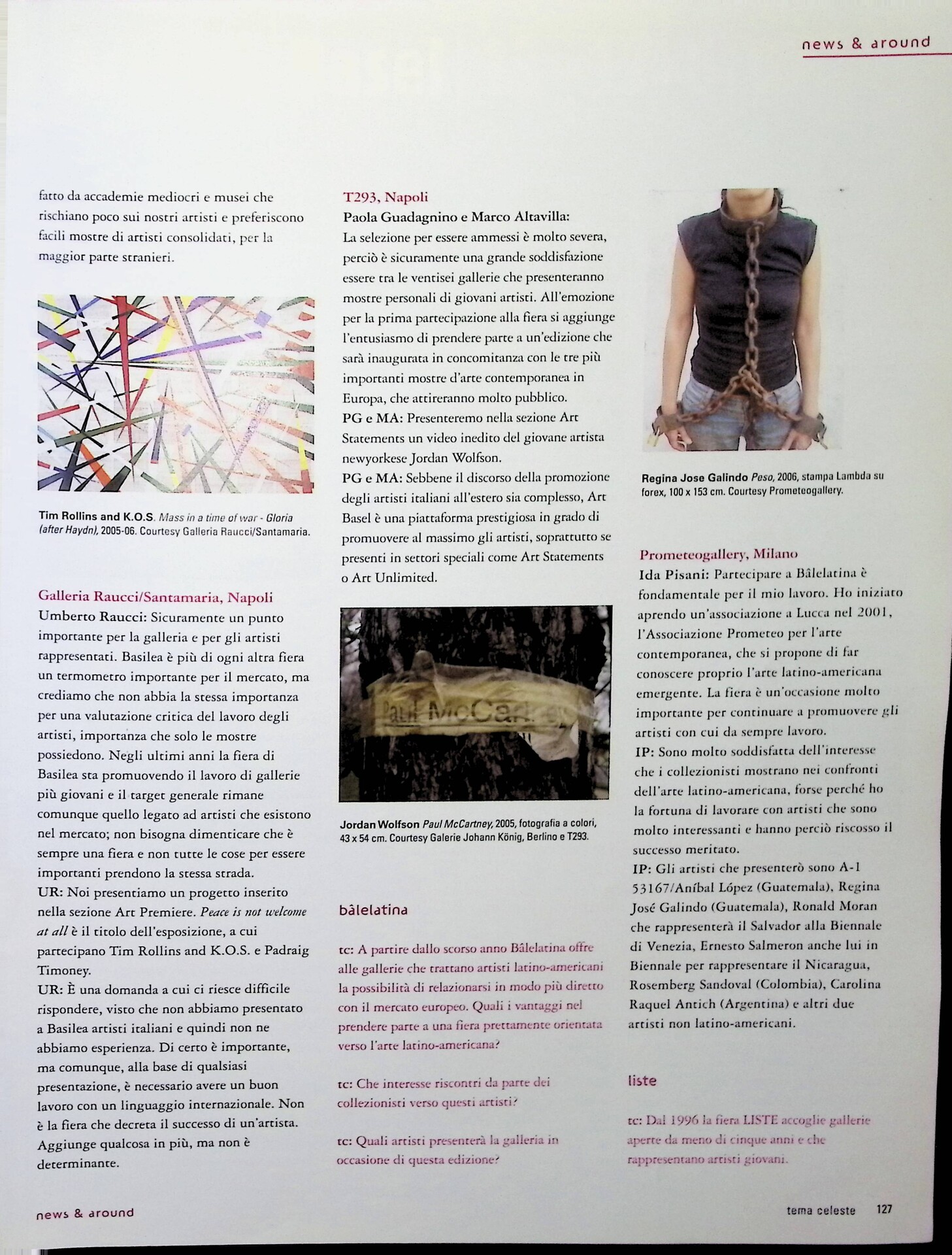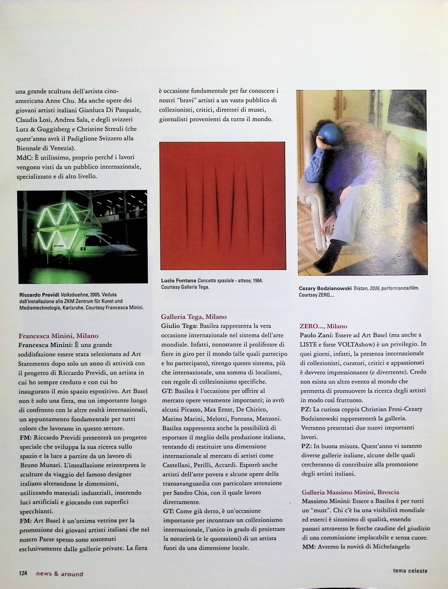 Francesca Pagliuca, Gallerie italiane a Basilea, «Tema Celeste», n. 121, maggio-giugno 2007, pp. 123-128