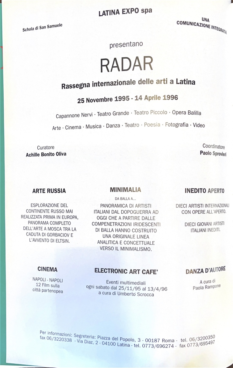 | Descrizione | Pubblicità della rassegna internazionale delle arti a Latina, intitolata Radar, con una sezione dedicata all'arte russa. |