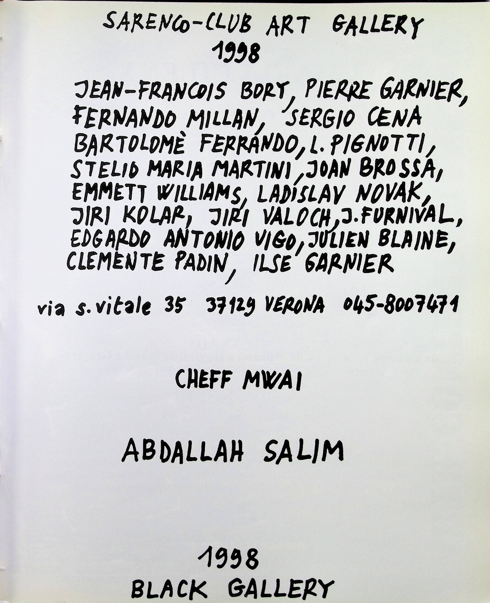 | Nomi | Salim, Abdallah, Sarenco [pseudonimo di Mabellini, Isaia] |